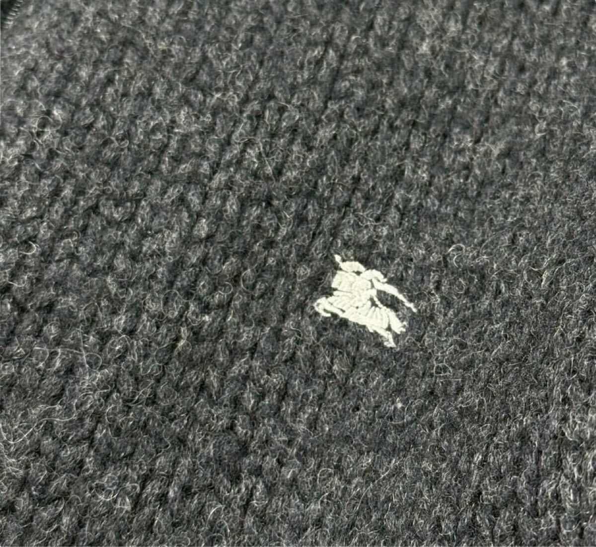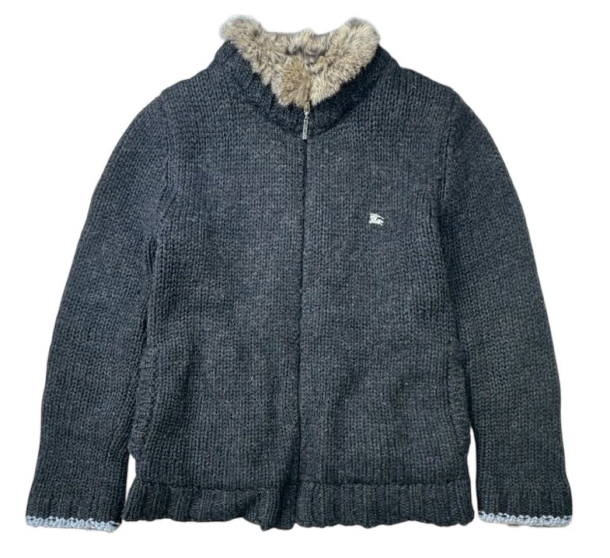BURBURRY BLACK LABEL バーバリー ブラックレーベル ラビットファー付き ホース刺繍 裏地ノバチェック ニットジャケット チャコール 2