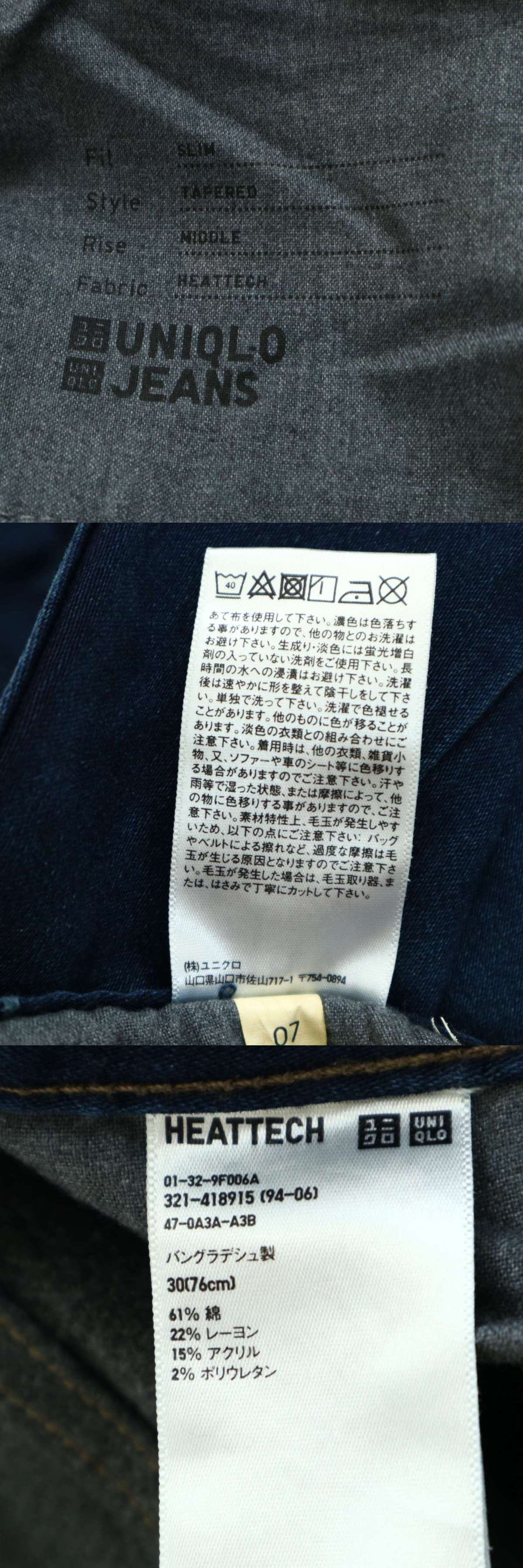 UNIQLO ユニクロ 秋冬★ 裏起毛 ヒートテック ストレッチ スリムフィット デニム パンツ ジーンズ Sz.76 メンズ