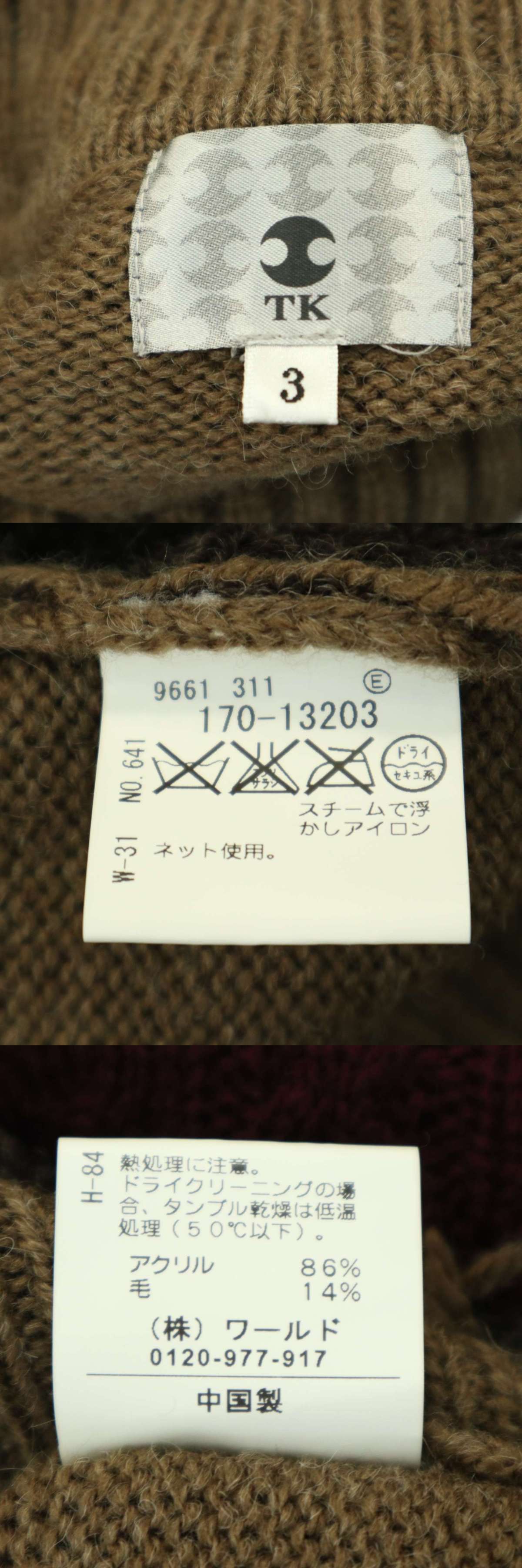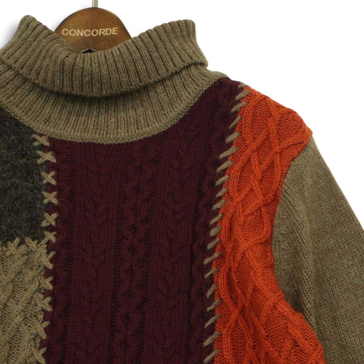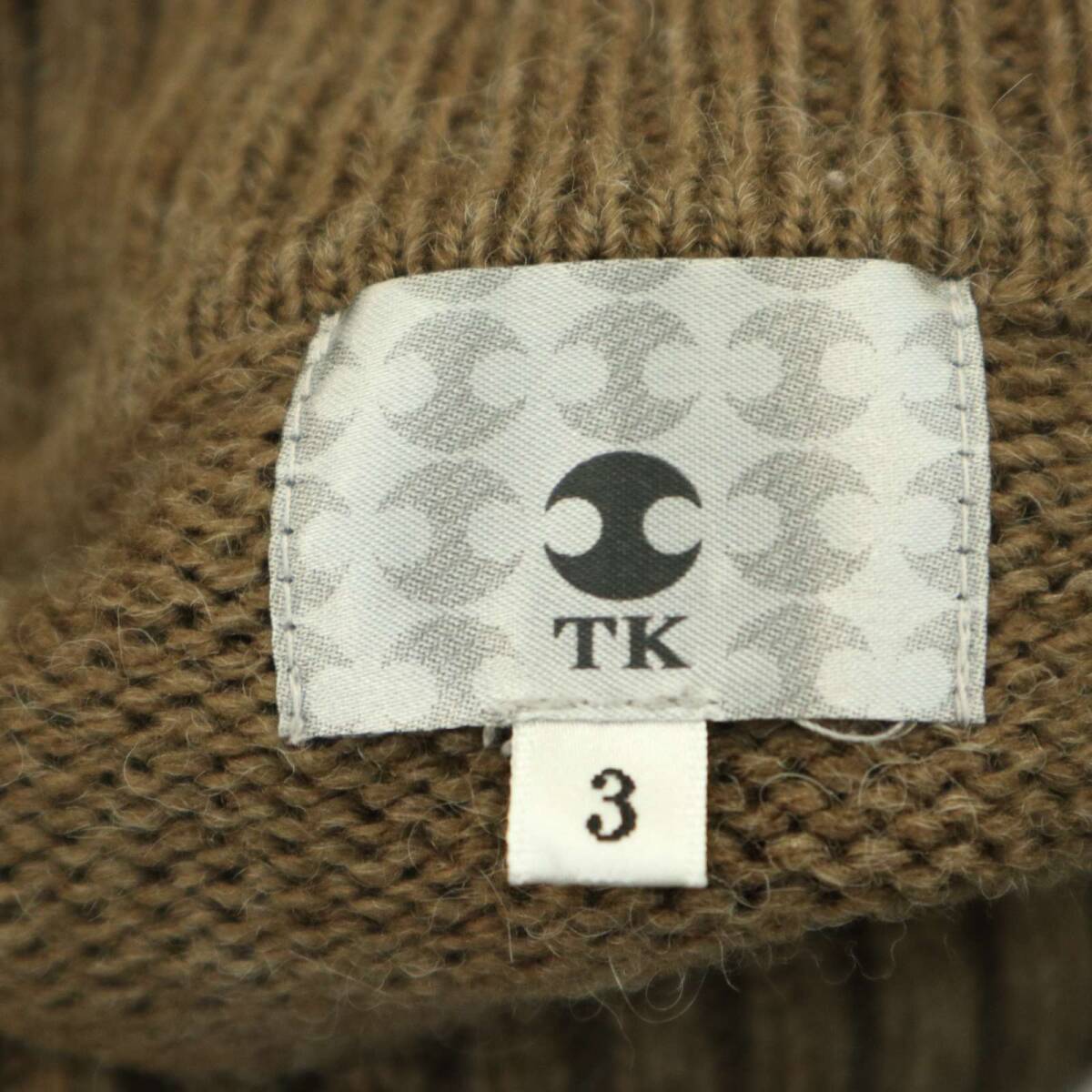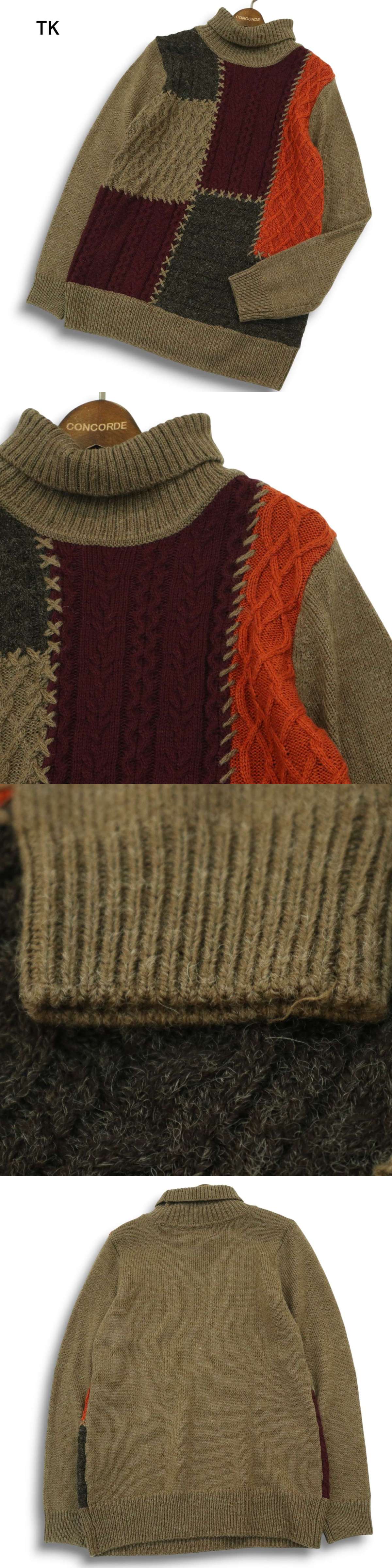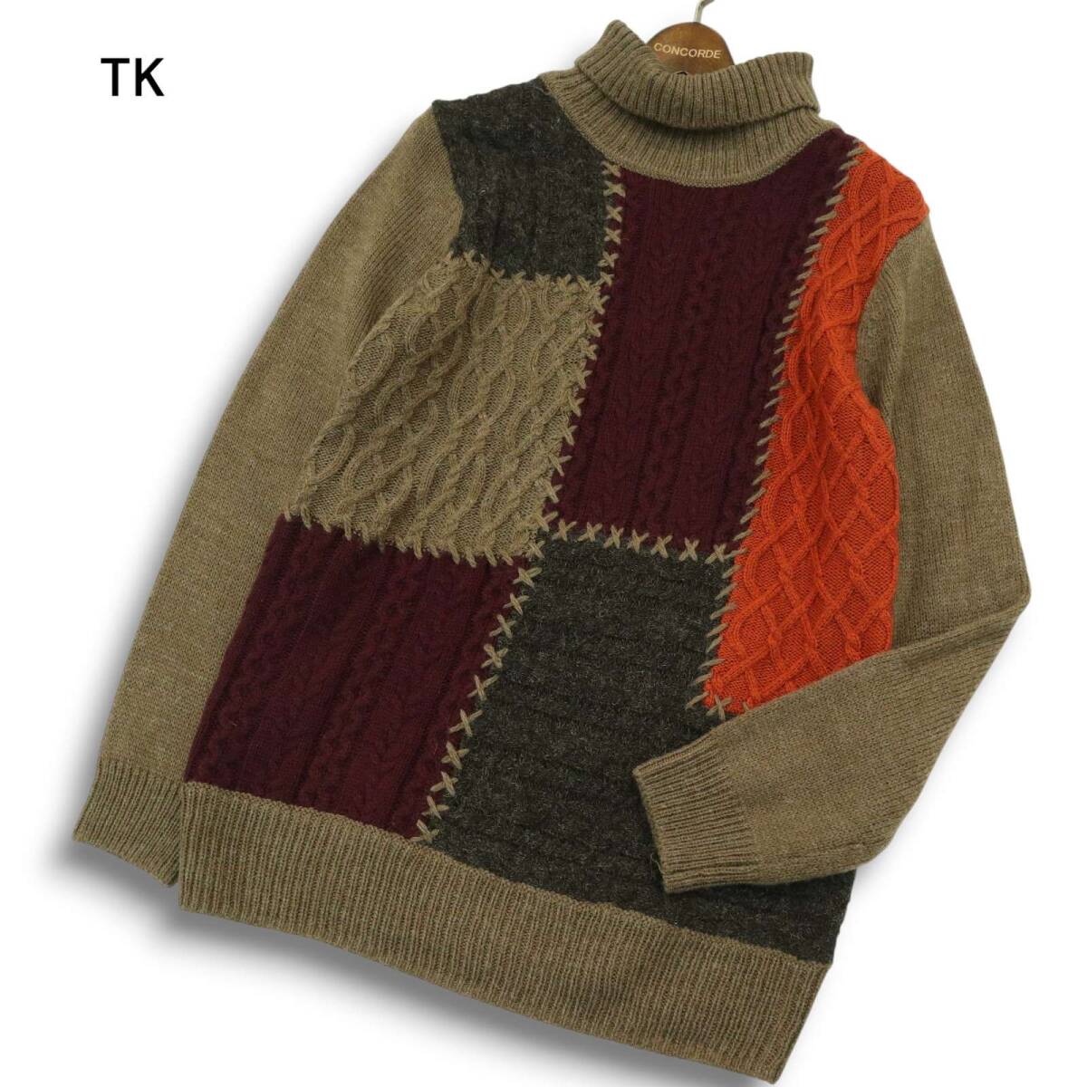 TK タケオキクチ 秋冬★ ウール混 切替 タートルネック ニット ケーブル セーター Sz.3 メンズ