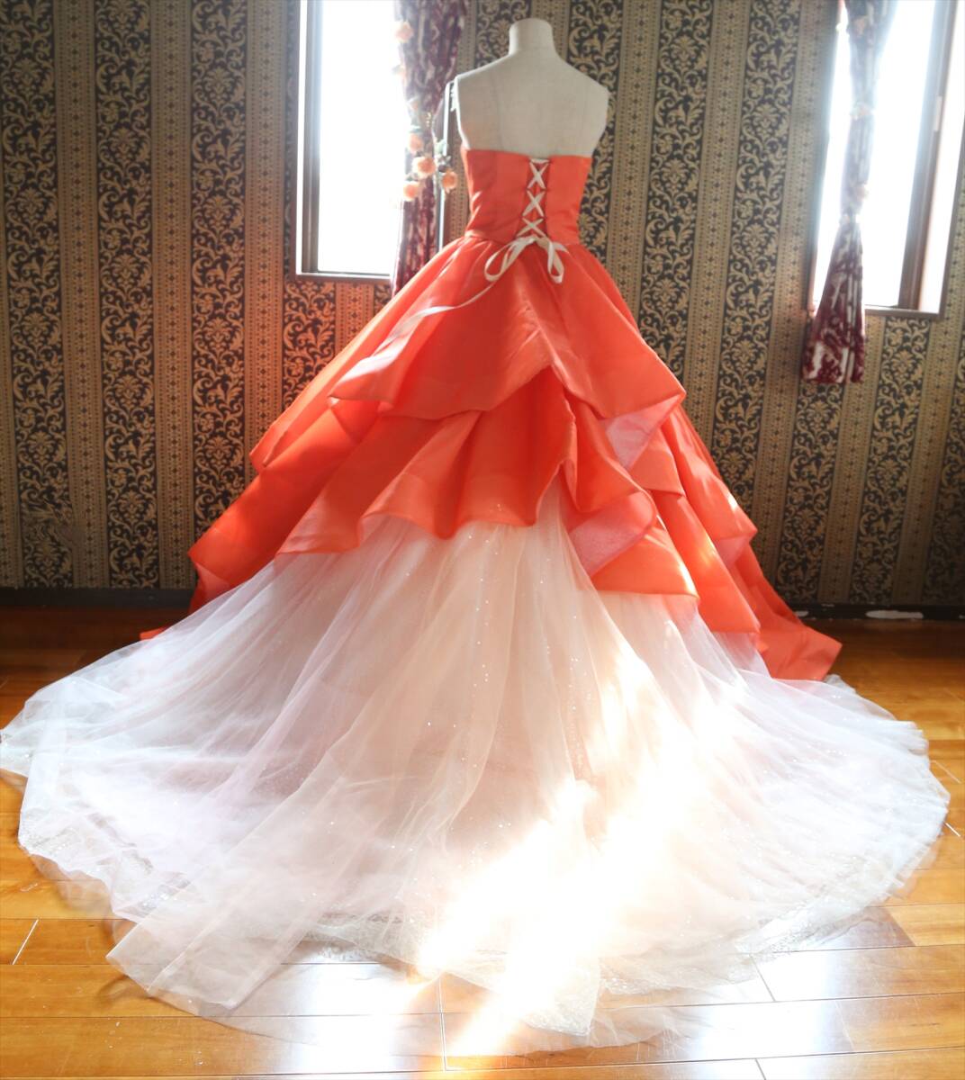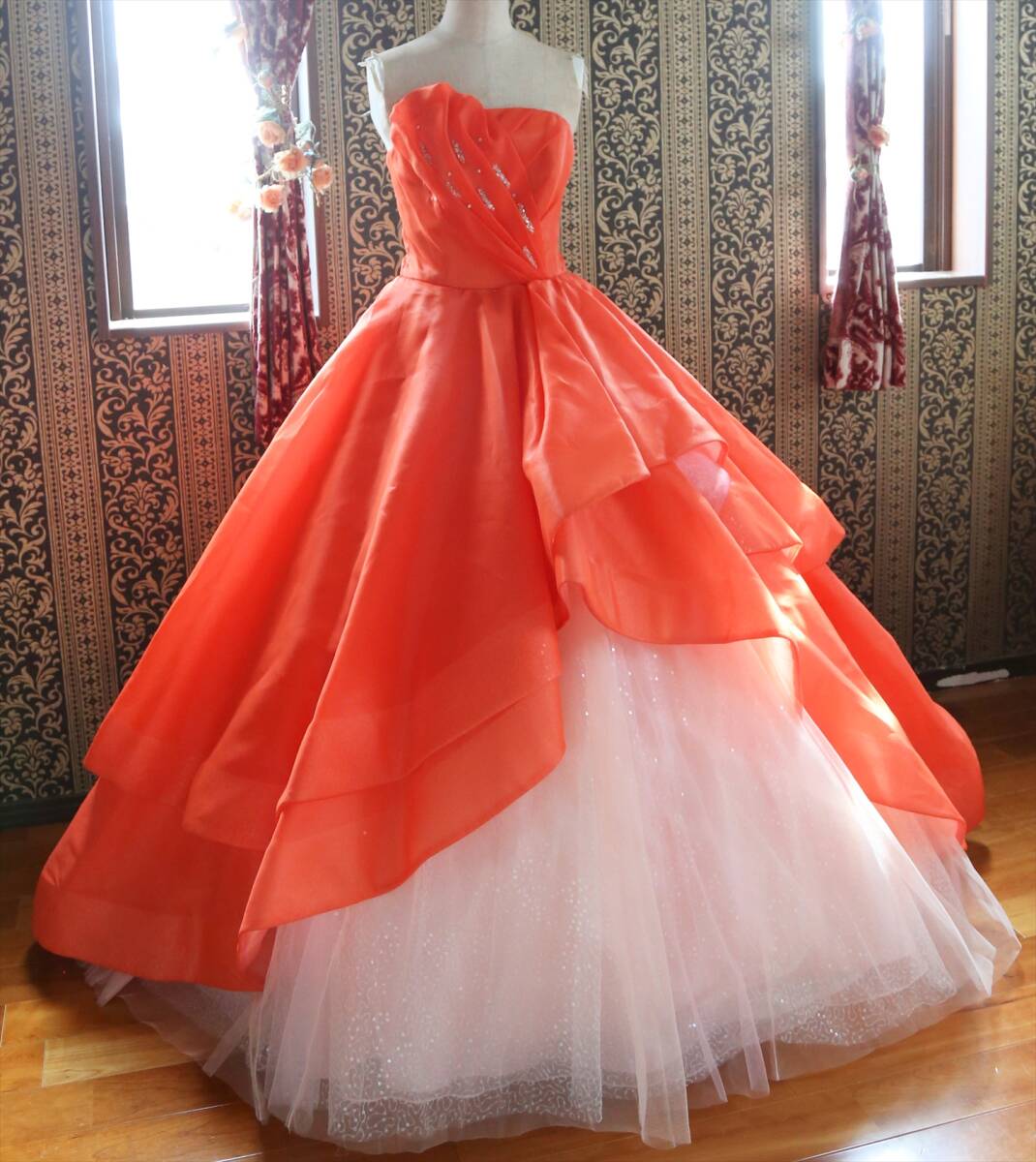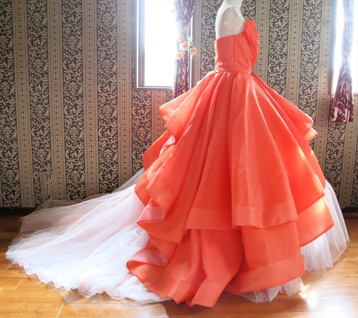 佐々木希コレクション高級ウエディングドレス編上げ調節可能7号9号11号S~Lサイズオレンジカラードレス