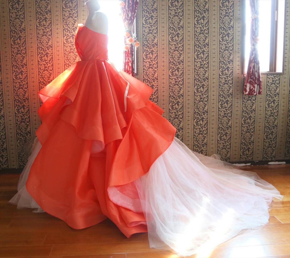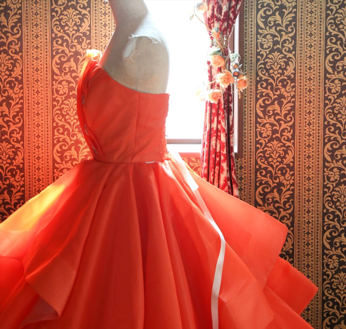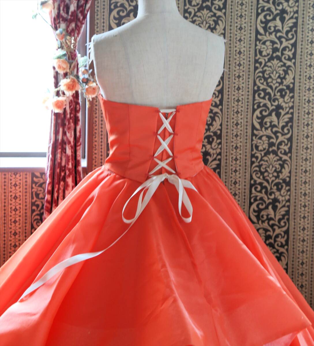 佐々木希コレクション高級ウエディングドレス編上げ調節可能7号9号11号S~Lサイズオレンジカラードレス
