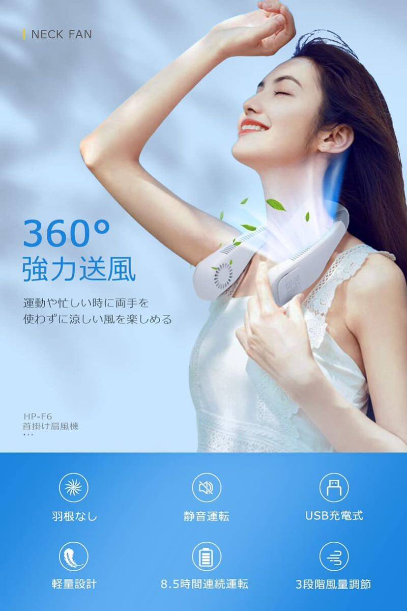 【首掛け扇風機&360°強力送風】通勤・通学をはじめスポーツやアウトドアなど様々なシーン、特にこの夏はマスク着用時の蒸れや、メイク崩れが気になる人も多いと思うので常に顔に風を送ることができる首掛け扇風機です。手に持つ必要がないため、庭仕事やアウトドア、荷物を持って移動するときなどにも適しています。羽の代わりにファン内部のタービンが回転して空気を吸い込み、48個の出風口からの送風が首を包み込み、体に無理のない自然な涼しさを実現します。