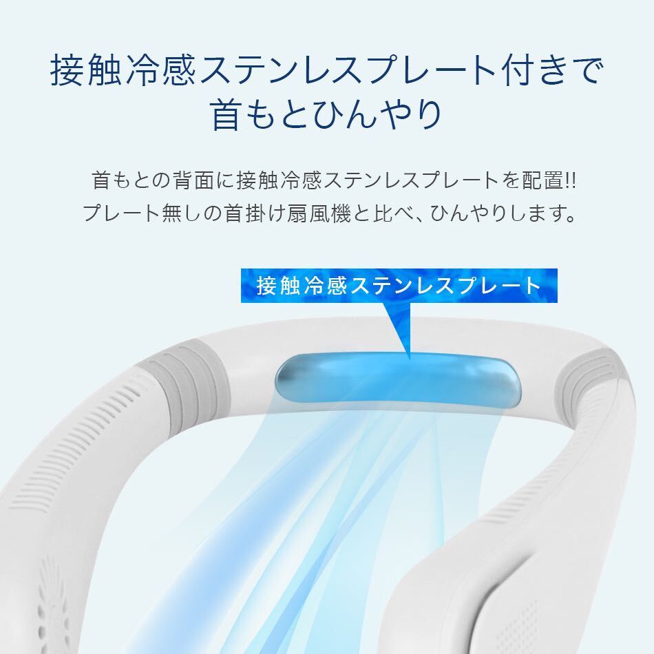 【くびかけ扇風機 急速冷却】首の後ろに接触冷感ステンレスヒートシンク付き、首元では快適な冷感を感じます。ご注意:首後ろのステンレス板は電気的に冷却機能がありません 。熱中症や暑さによる立ちくらみに注意が必要な夏場に、手軽に清涼感が得られるマストアイテムです。