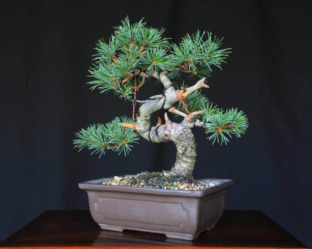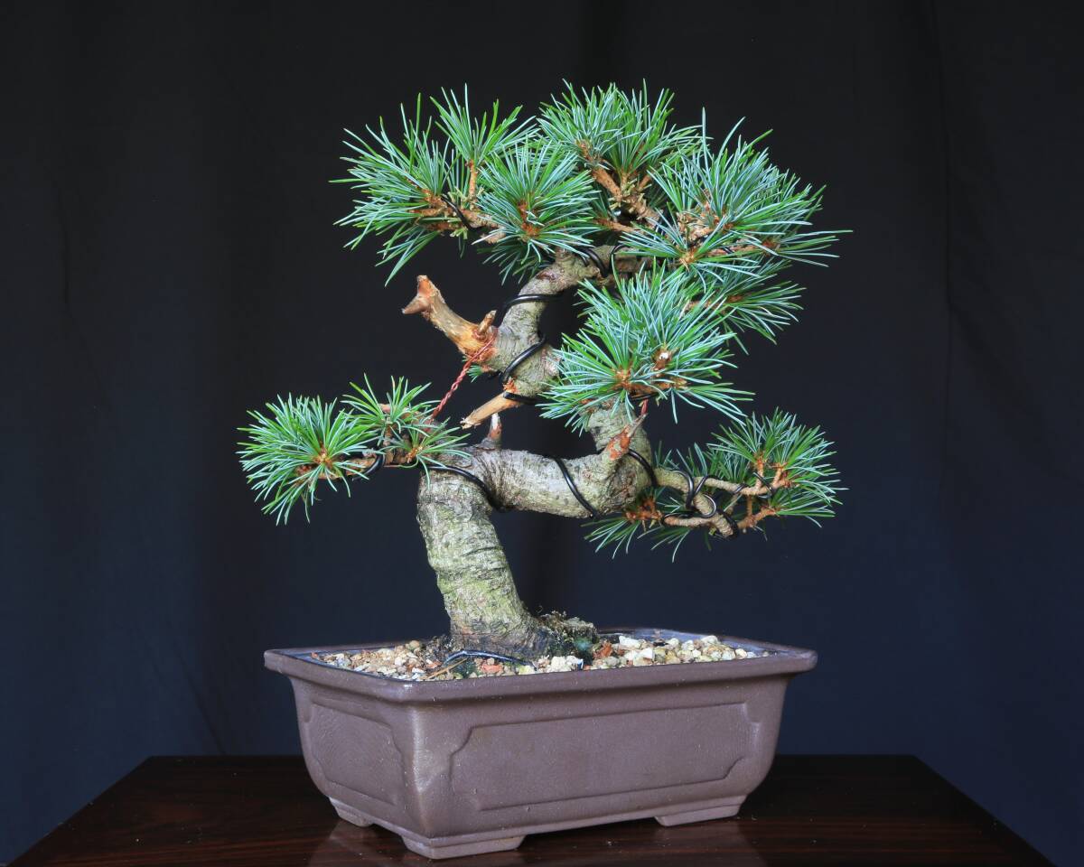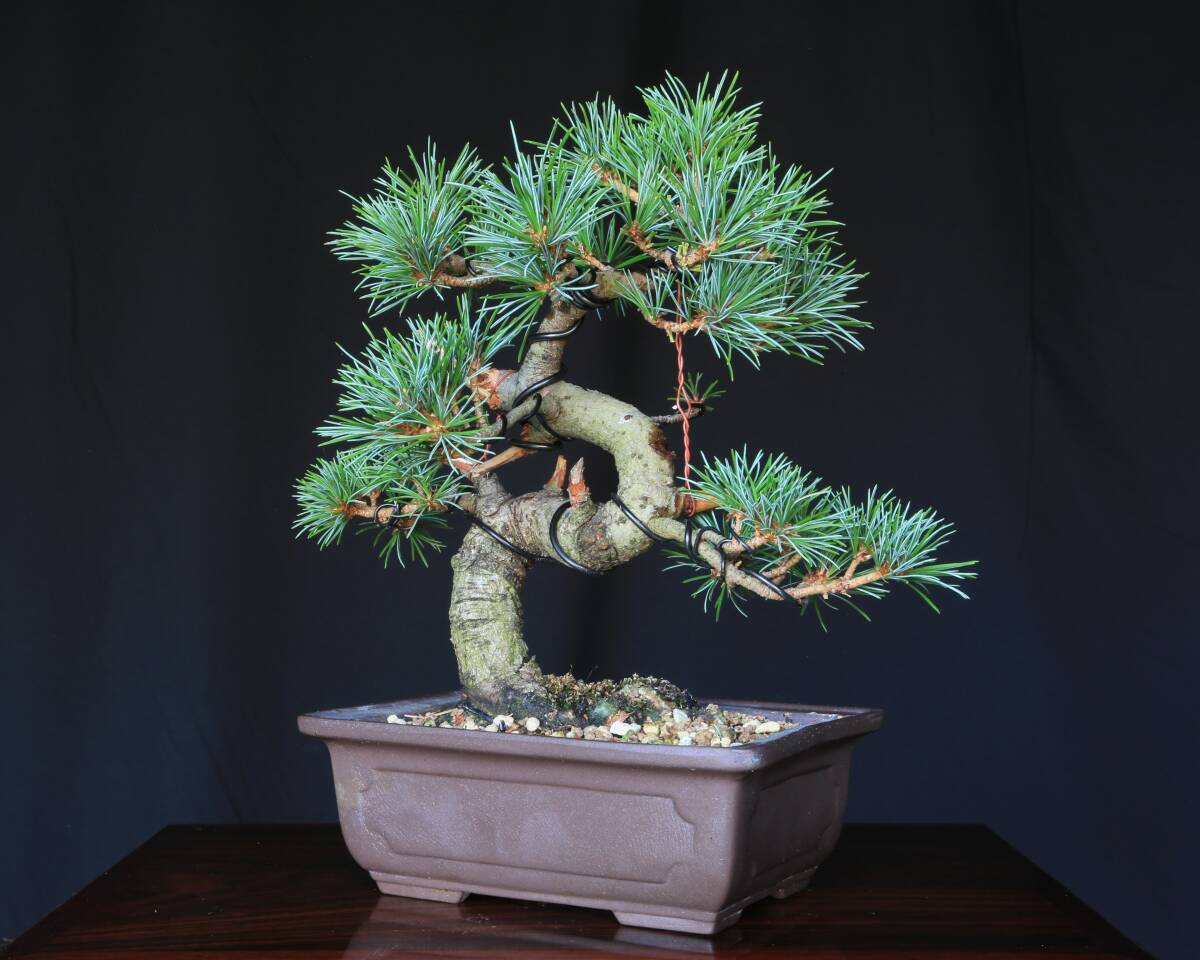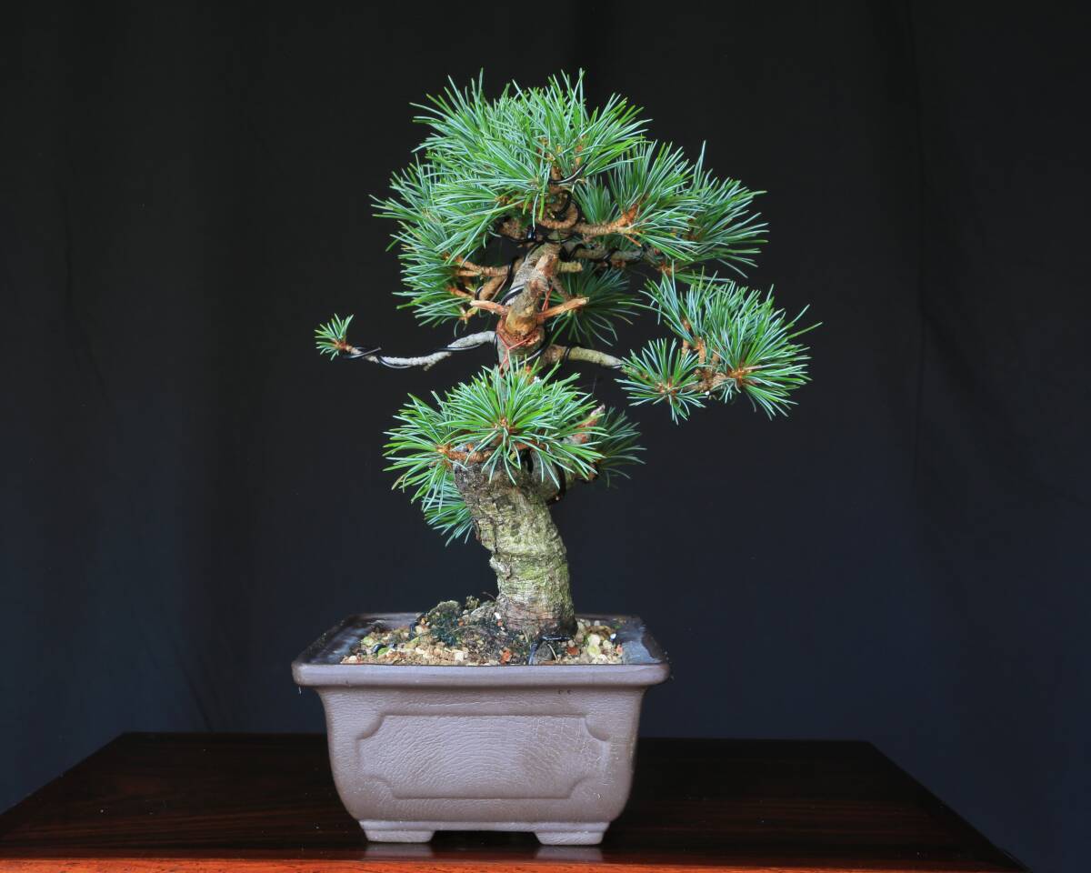 吾妻五葉松【大巓性】の小品盆栽になります。 葉性抜群で芽を持ちやすいのが特徴です。 育ちは比較的遅く太りにくい為、小品盆栽向きの性と言えます。 根元や立上がりからの幹模様が良く将来性抜群の一樹です。