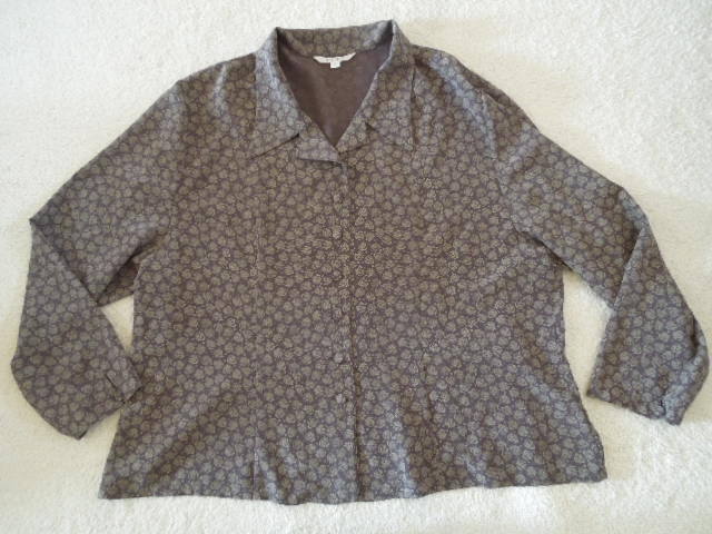 B・B・N・Y 長袖ブラウス!21号・チャコールグレー系地柄