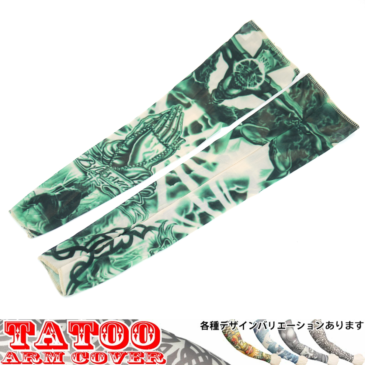 タトゥーアームカバー 2枚セット NO.11 入れ墨 ゆうパケット対応アームスリーブ 祈り キリスト 十字架 煽り対策