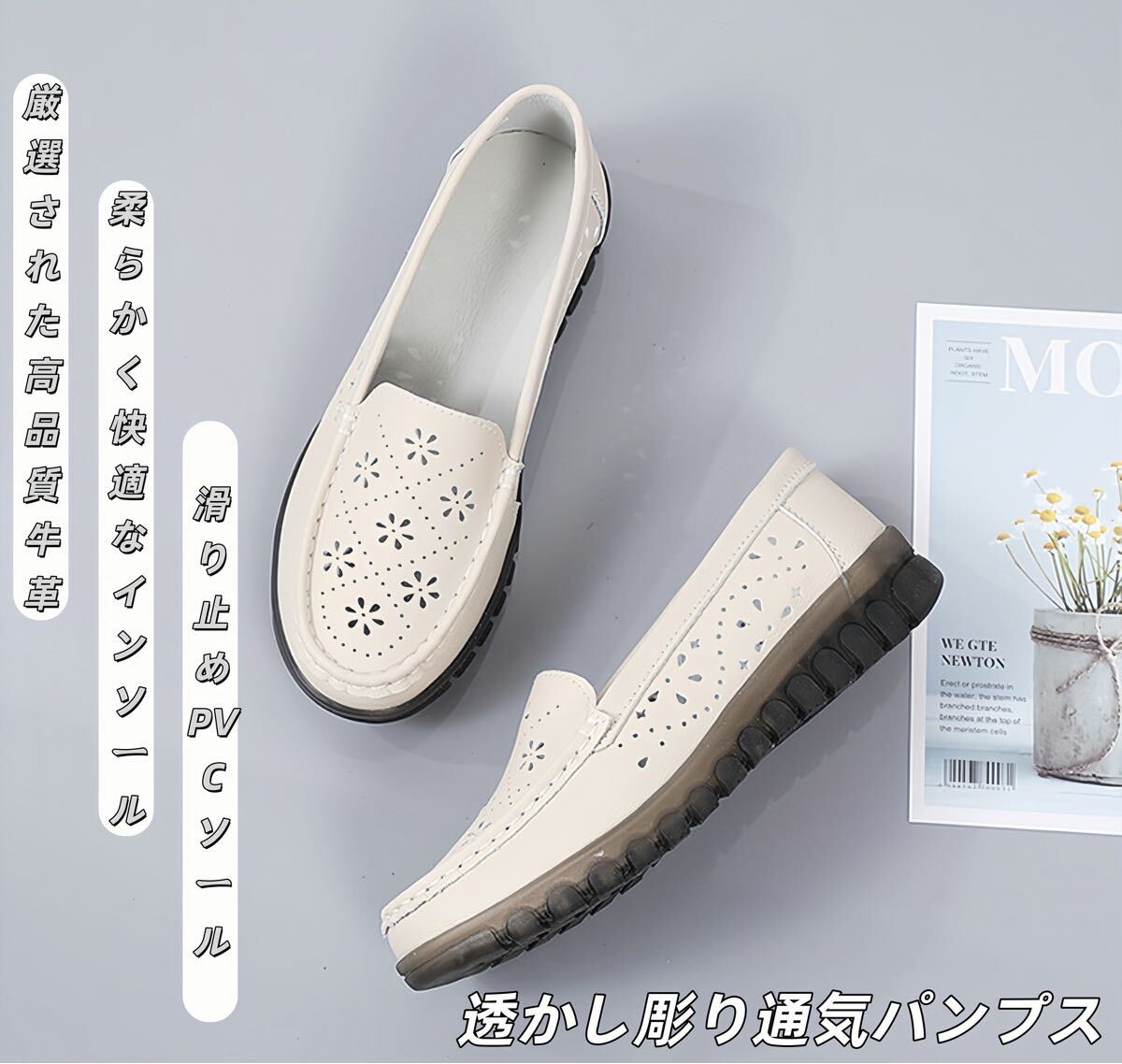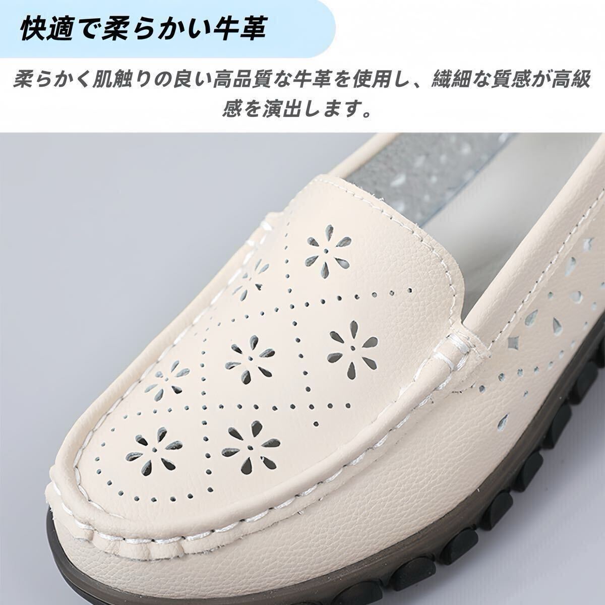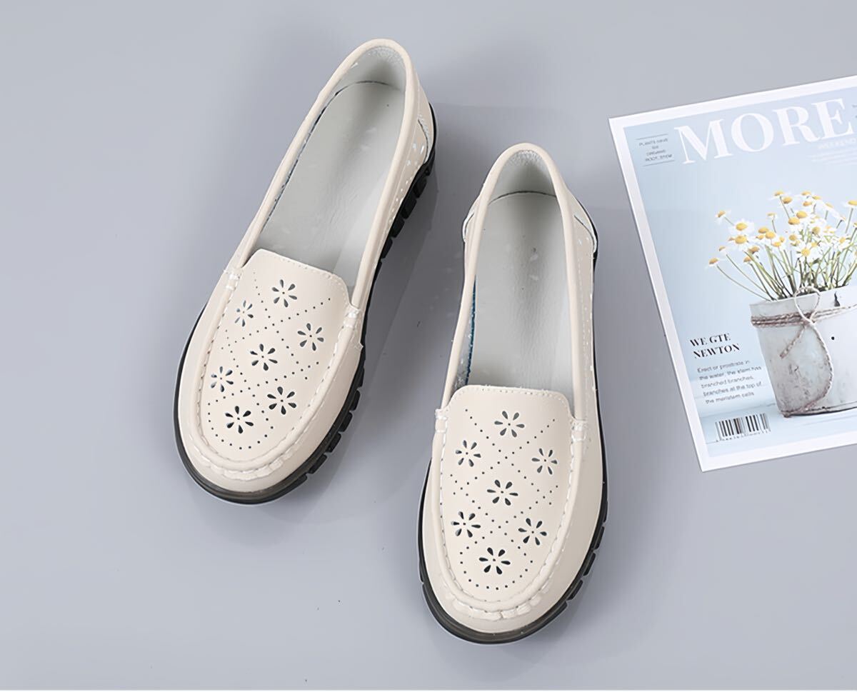 シニア向け靴 レディース フラットシューズ クロッグシューズ 本革 牛革 ふかふかソール 滑り止め 通気性 軽量 ベージュ