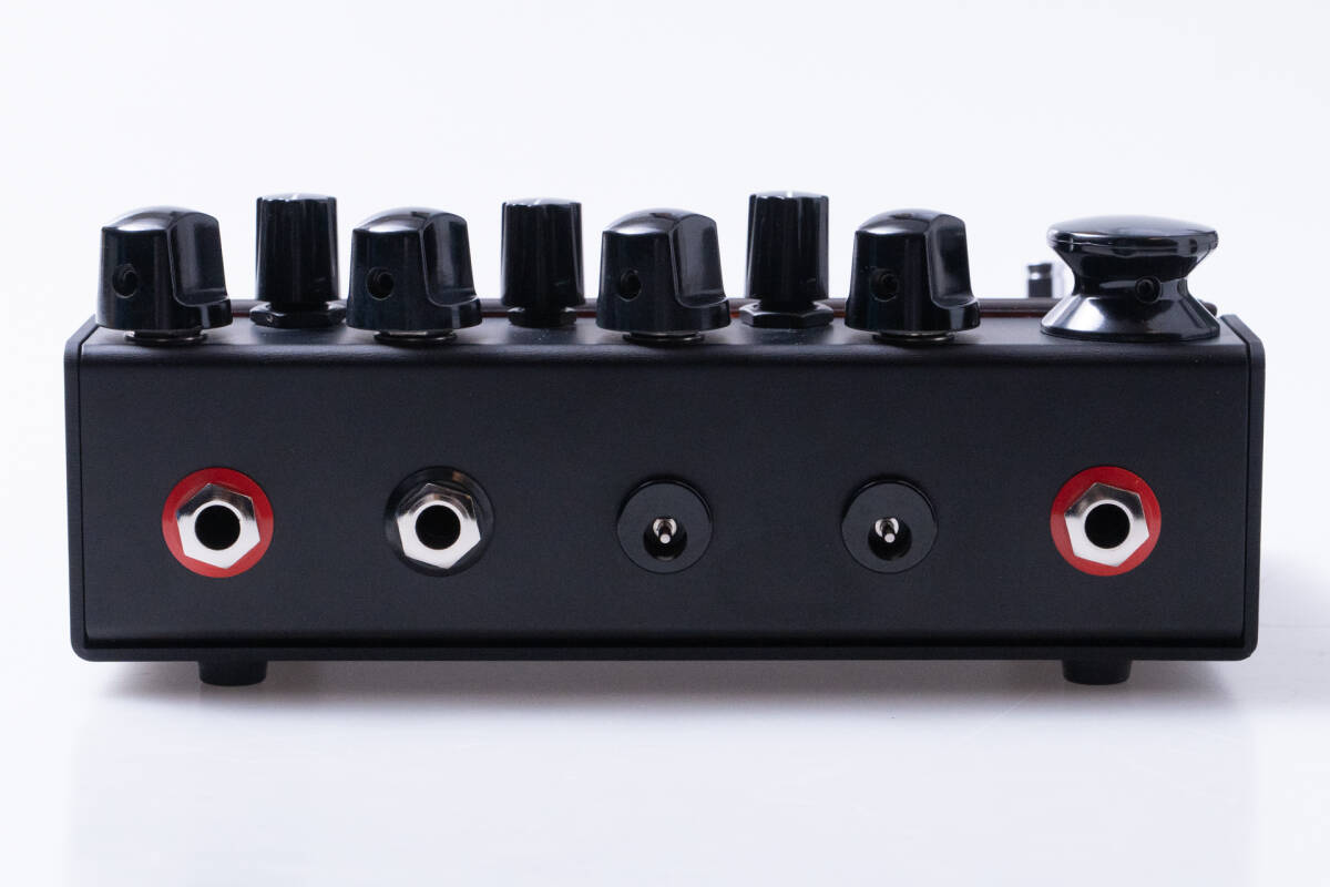 パワーアンプを直接動かせるほどに大きなゲイン設定が可能で、PA用のパワーアンプや、ベースアンプのパワーアンプに直接入力ができます。