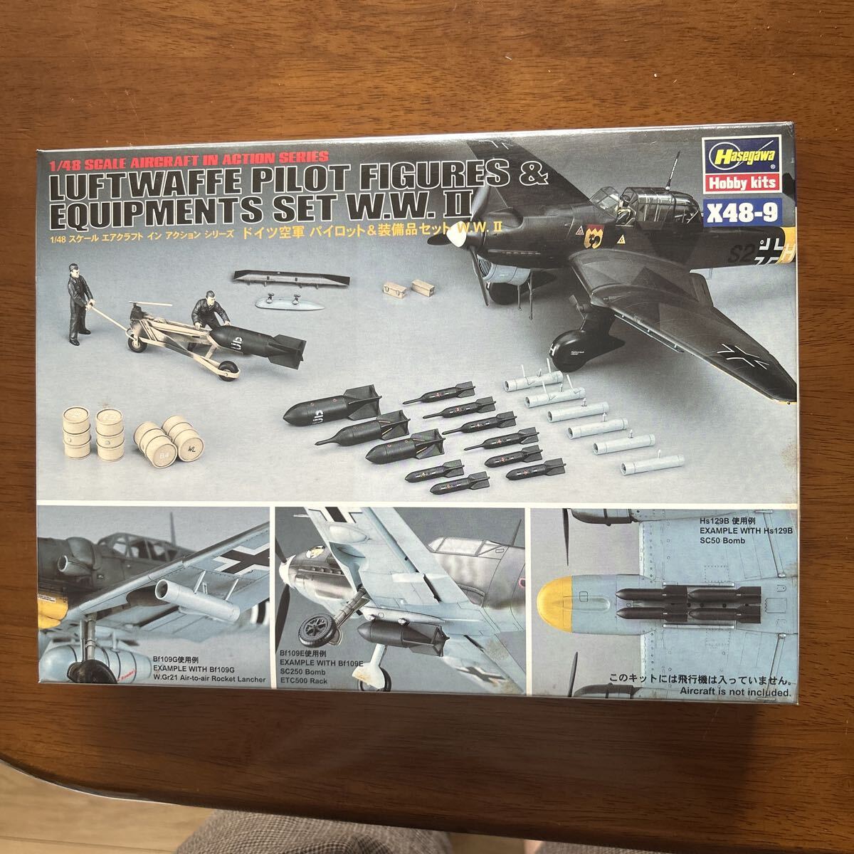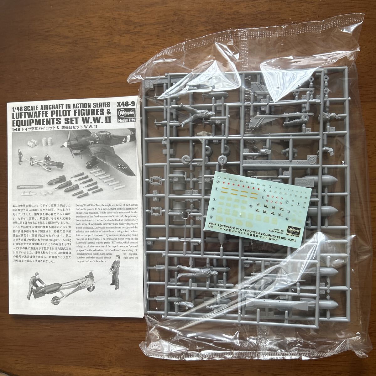 ハセガワ1/48 ドイツ空軍パイロット&装備品セット W.W.II(袋未開封、箱にテープ跡有り、画像が全てです)