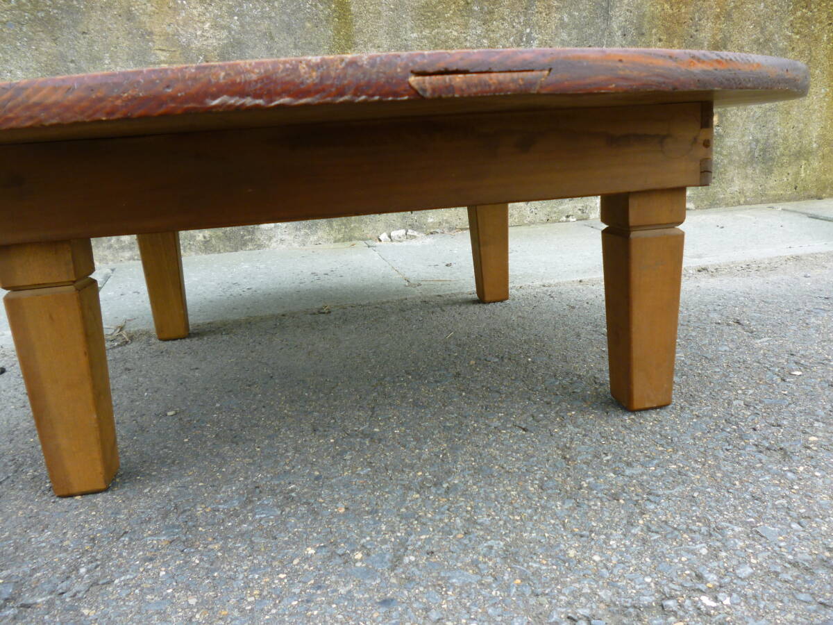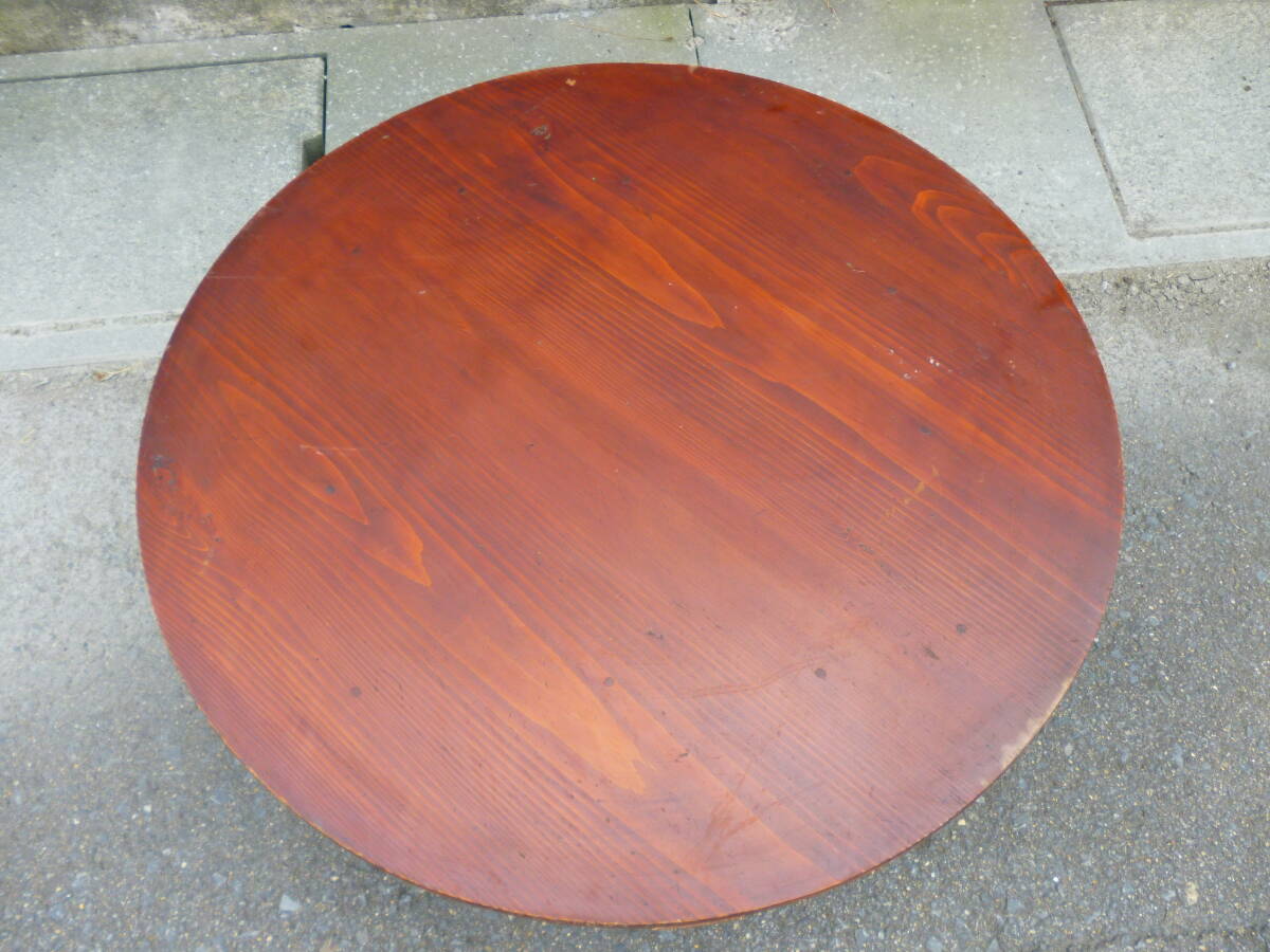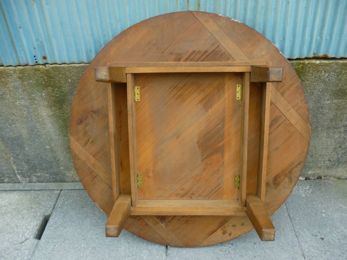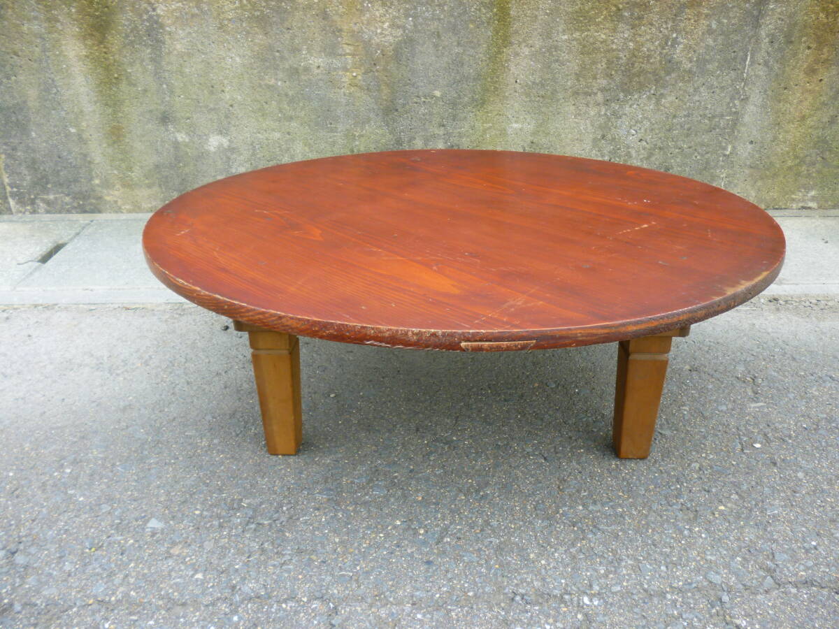 | 市場での買い受け品です。 とても古い物で使用感も多々あります。 ちゃぶ台として使えないなどの致命的な感じはありません。 おおよそのサイズですが、直径 83㎝ 畳んだ時の厚さ7.5㎝ 脚を立てた時の高さ 25㎝となります。 サイズを見てお分かりかと思いますが、3辺合計170㎝以上あります。 プチプチ包装のみの軽装梱包でお送りするつもりですが、ゆうパックで送れない場合は発送会社変更しますのでご了承ください。 |