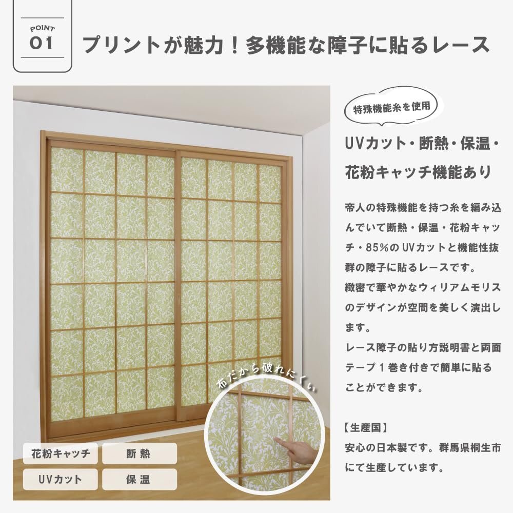 【在庫限りです】【SALE期間中】破れない障子紙ウイリアム・モリスデザインレース遮熱日本製障子に貼る採光性1枚入り花粉キャッチシスル断熱