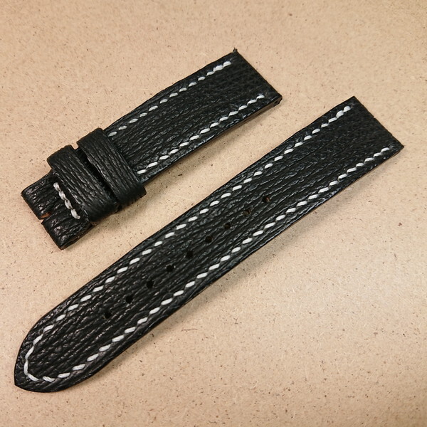 シャークレザー ステッチ有 時計バンド 黒色 サイズオーダー 15mm 16mm 17mm 18mm 19mm 20mm 21mm 22mm 23mm など