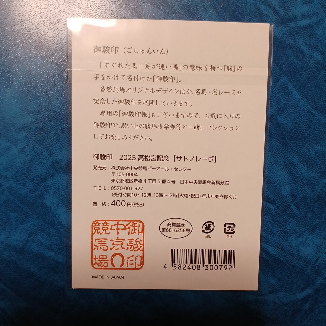 商品名 : 御駿印 2025年高松宮記念 サトノレーヴ