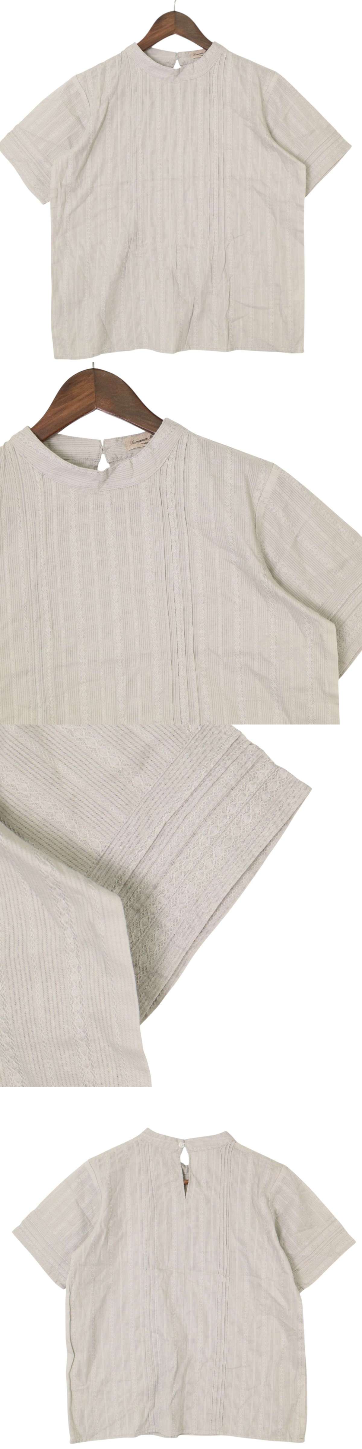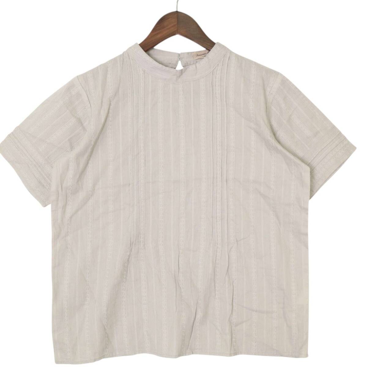 SM2 Samansa Mos2 サマンサモスモス 春夏 刺繍★ 半袖 ストライプ ブラウス プルオーバー シャツ Sz.F レディース