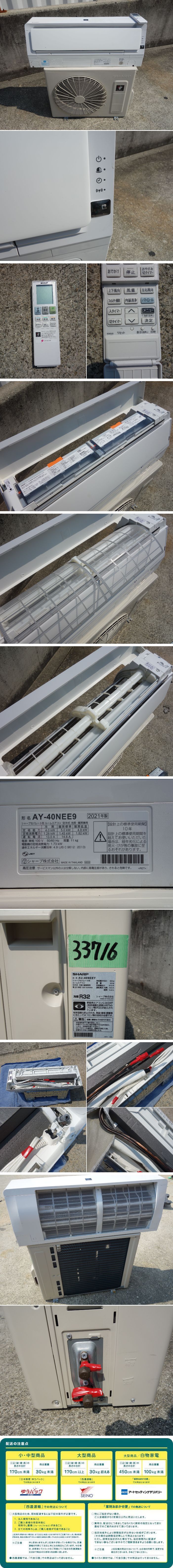 【中古】M▽即決 シャープ ルームエアコン 2021年 4.0kw ~16畳 100V プラズマクラスター搭載 自動掃除 AY-40NEE9 (33716)
