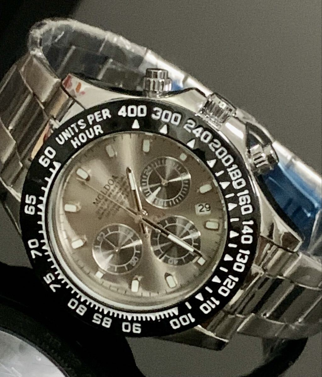 新作 メンズ腕時計 ビジネスウォッチ スポーツ腕時計 グレー ストップウォッチ