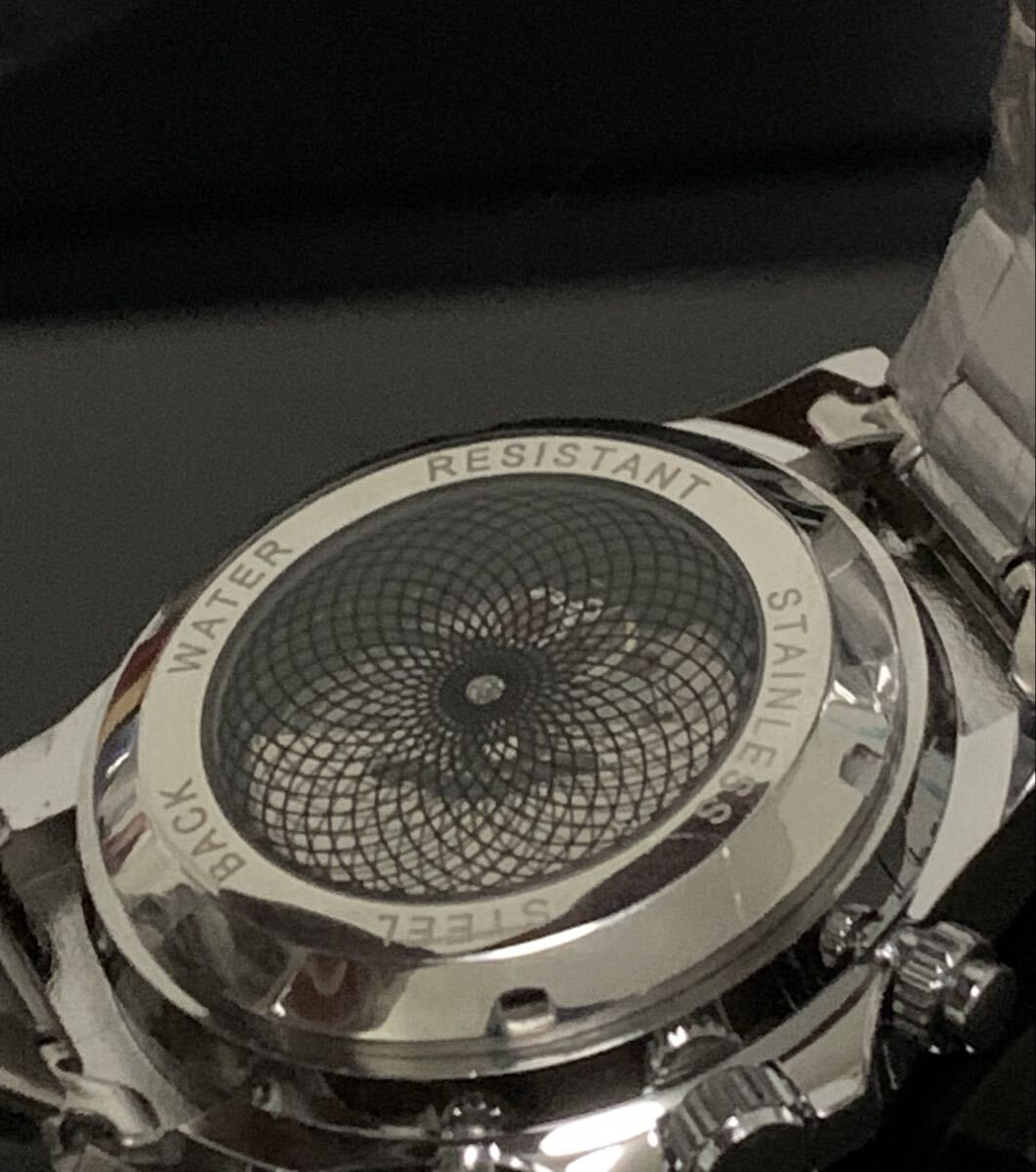 こちらクロノ作動時通常秒針の部分が動きますがまるで機械式の様にコクコクコクと動きますのでお値段以上の機能となっております