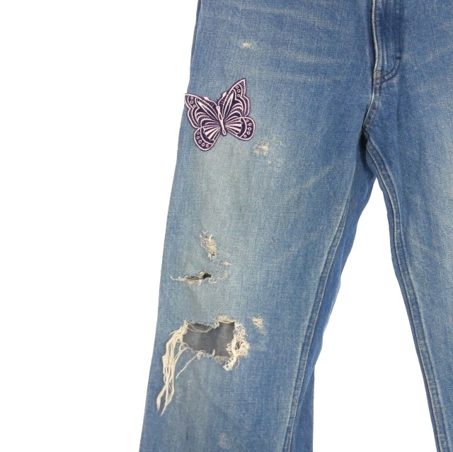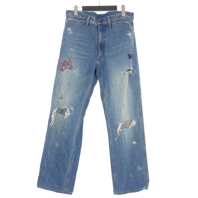 ニードルス ニードルズ Needles ダメージ加工 パッチデニム ストレートジーンズ M インディゴ KP144