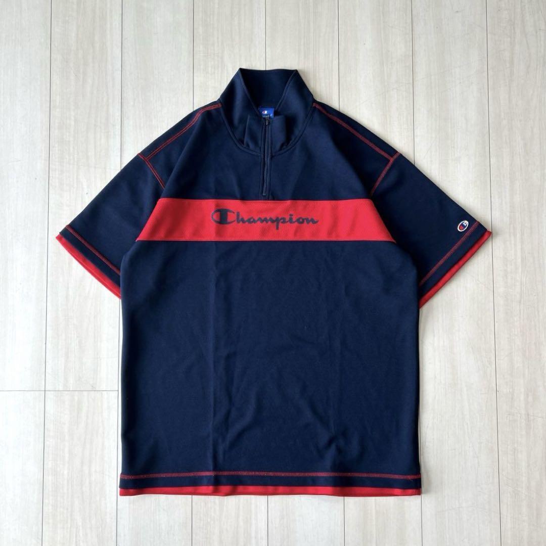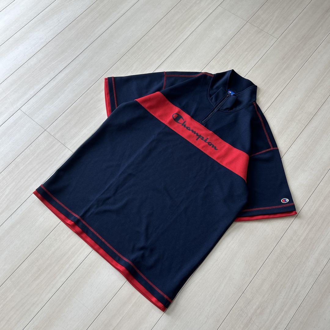 Champion チャンピオン ハーフジップ トラックTシャツ 3L 紺赤 ビックサイズ y2k
