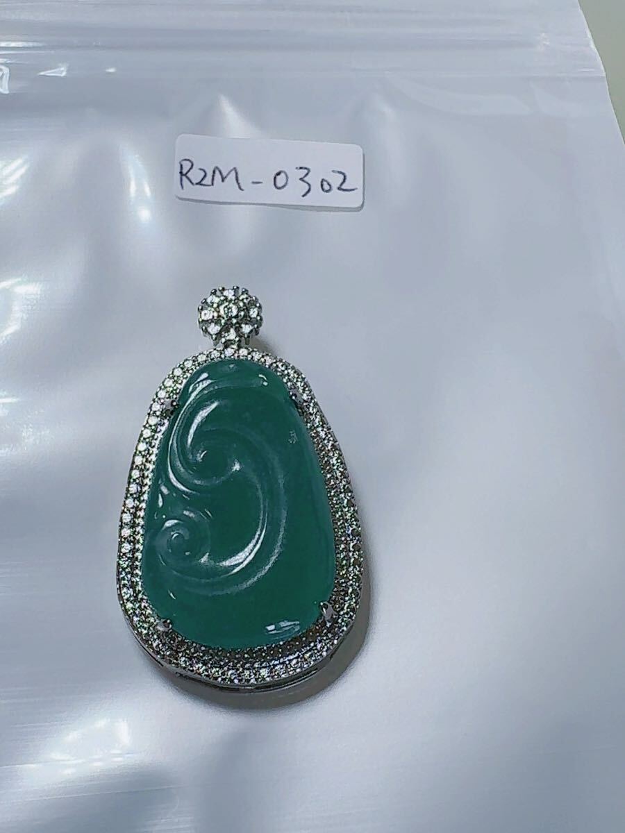 R2M-0302天然本翡翠 《本物保証》 藍水翡翠ペンダントチェーンSV925 一点物 魔除け 昇進 成功 風水 金運 財運 幸運 幸福 縁起物