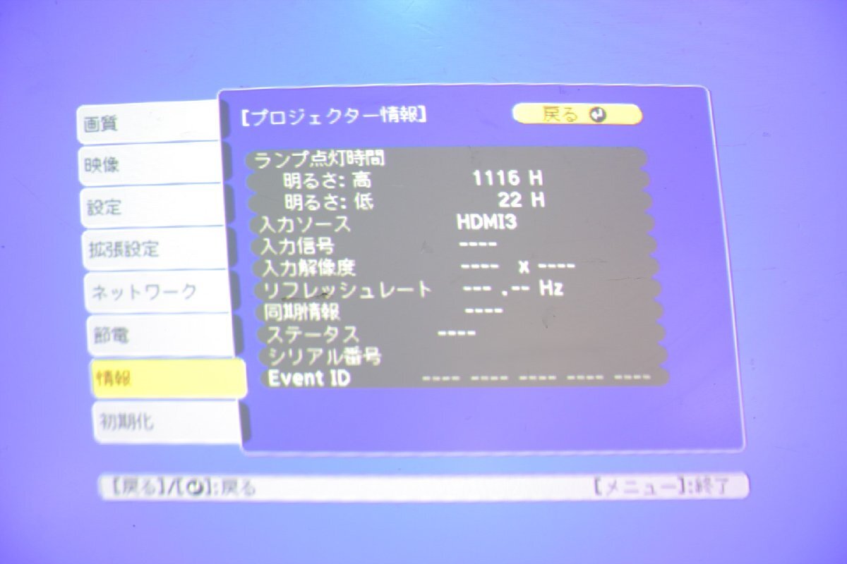 ☆【3H0827-1@】 EPSON エプソン 超短焦点ビジネスプロジェクター EB-685WT⑤ 100V H741D ランプ使用時間1116H/22H 動作保証