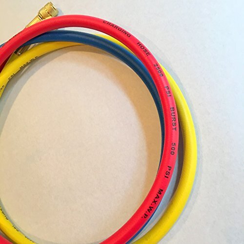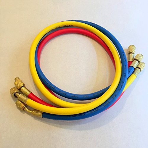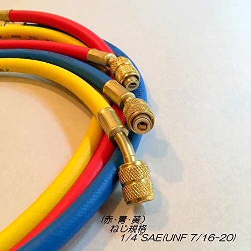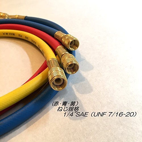 商品説明 | エアコンのR12、R22、R502用ガスチャージホース(黄・赤・緑)3本セットです。 【仕様】 ねじサイズ(3本共通):1/4”SAE(UNF 7/16-20) × 1/4”SAE(UNF 7/16-20) ホース長さ : 90cm 規定圧力 : 使用圧力 3.4MPa / 限界圧力 17.2MPa