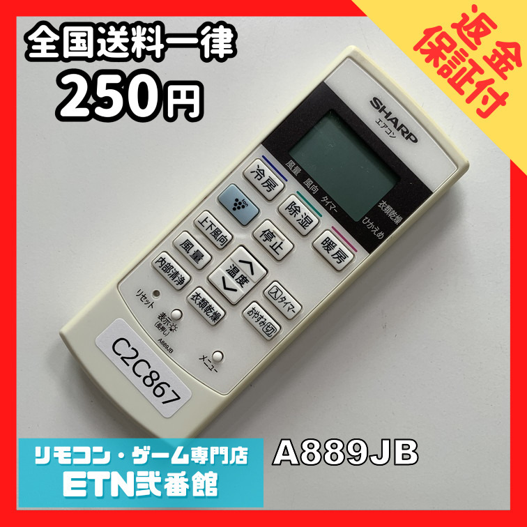C2C867 【送料250円】エアコン リモコン / SHARP シャープ A889JB 冷房 暖房 動作確認済み★即発送★