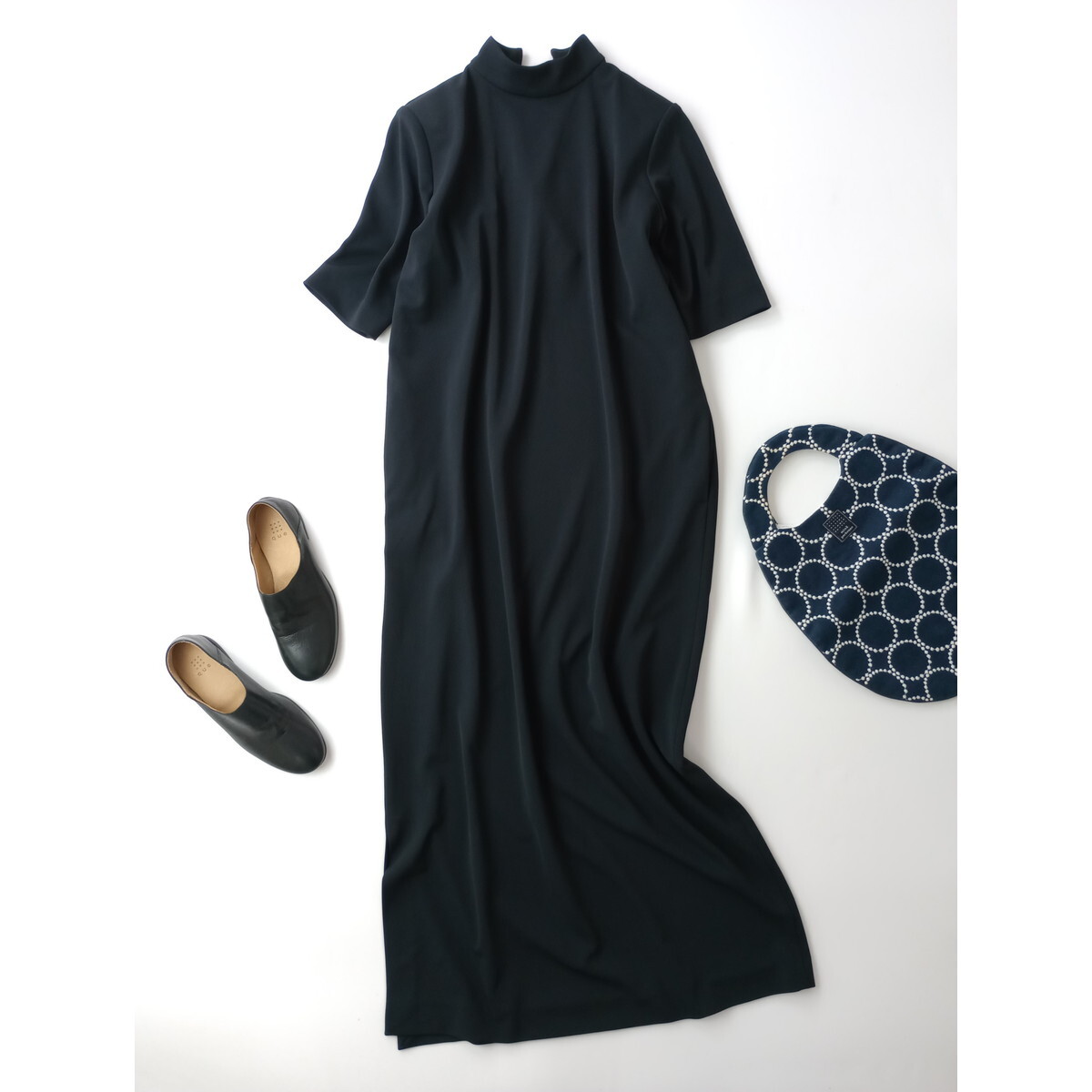 24AW RIM.ARK リムアーク Back v neck OP バックブイネック 半袖 ワンピース ロング ドレス 36 黒 ブラック 前後着 2WAY UVカット