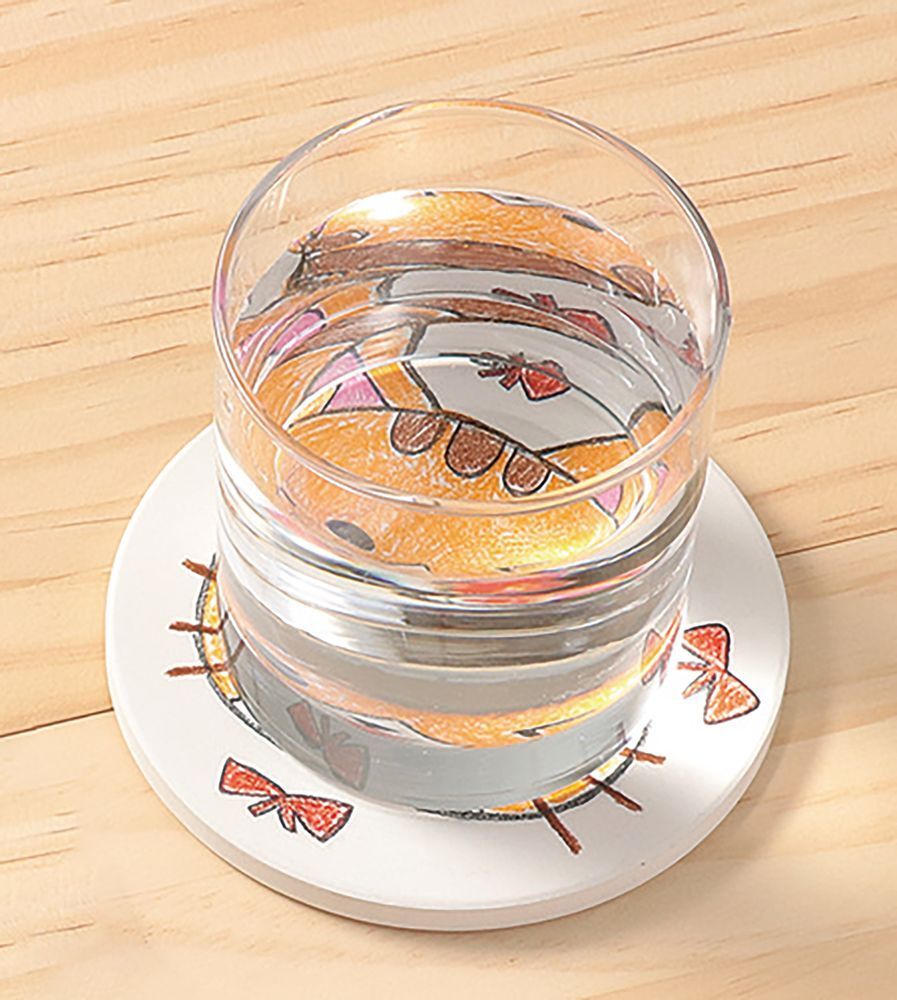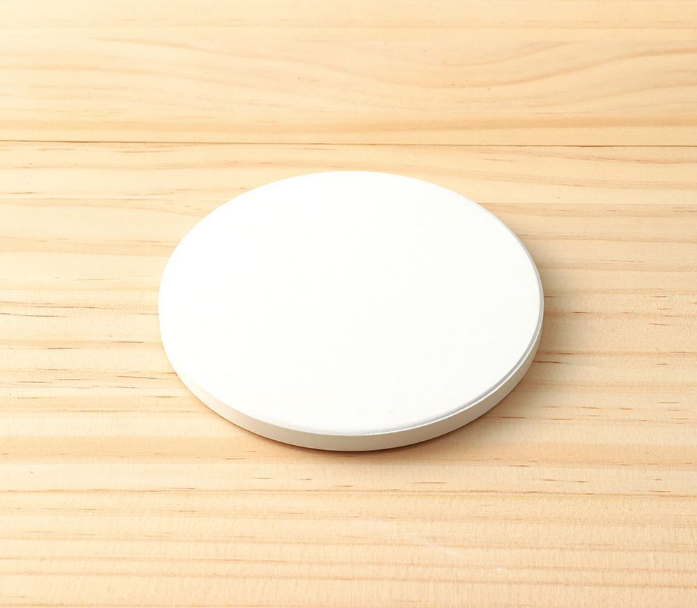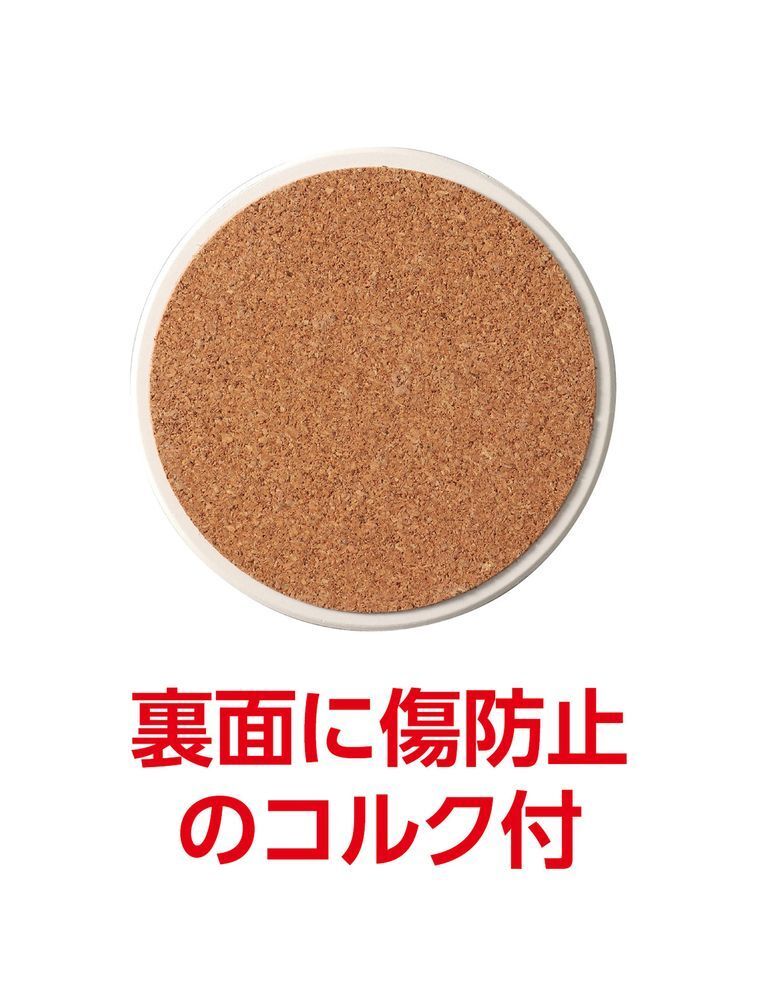 吸水性があって机を濡らさない白雲石のコースター。裏面に傷防止のコルク付き。