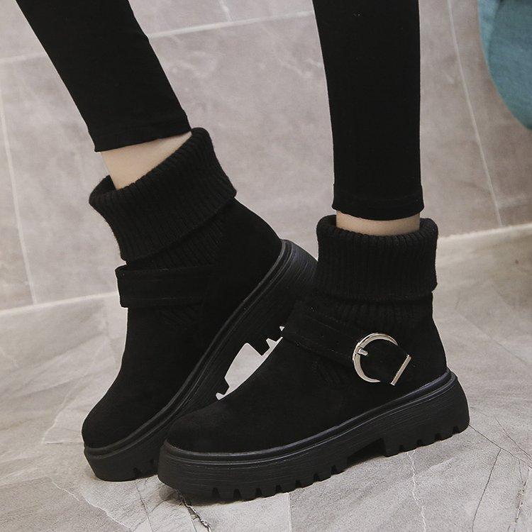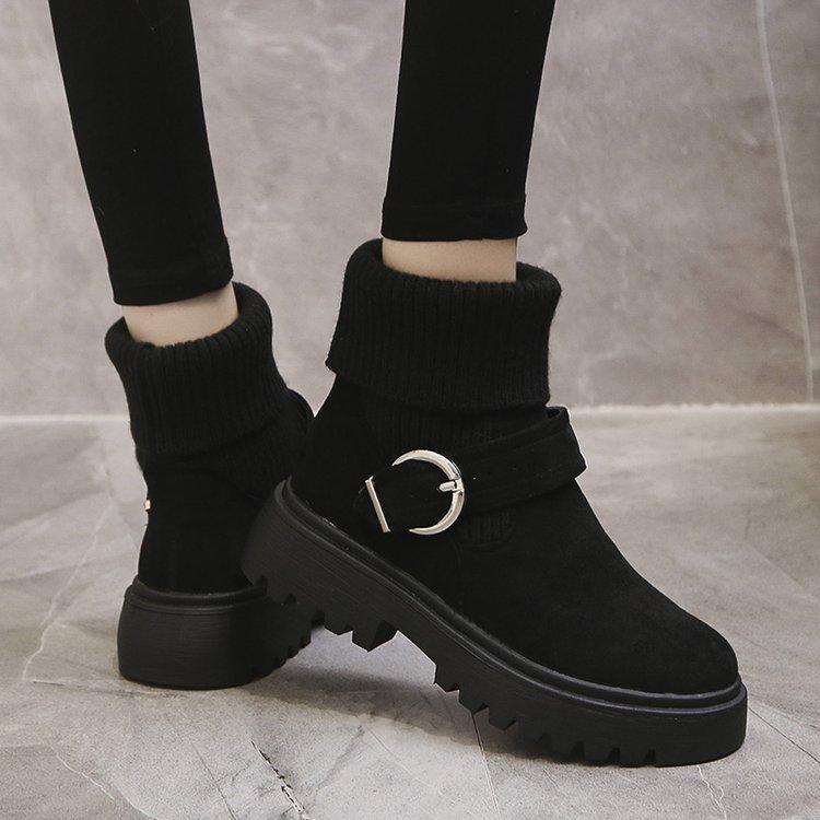 華奢な足首を引き立てるスリムシルエットの厚底ショートブーツ。