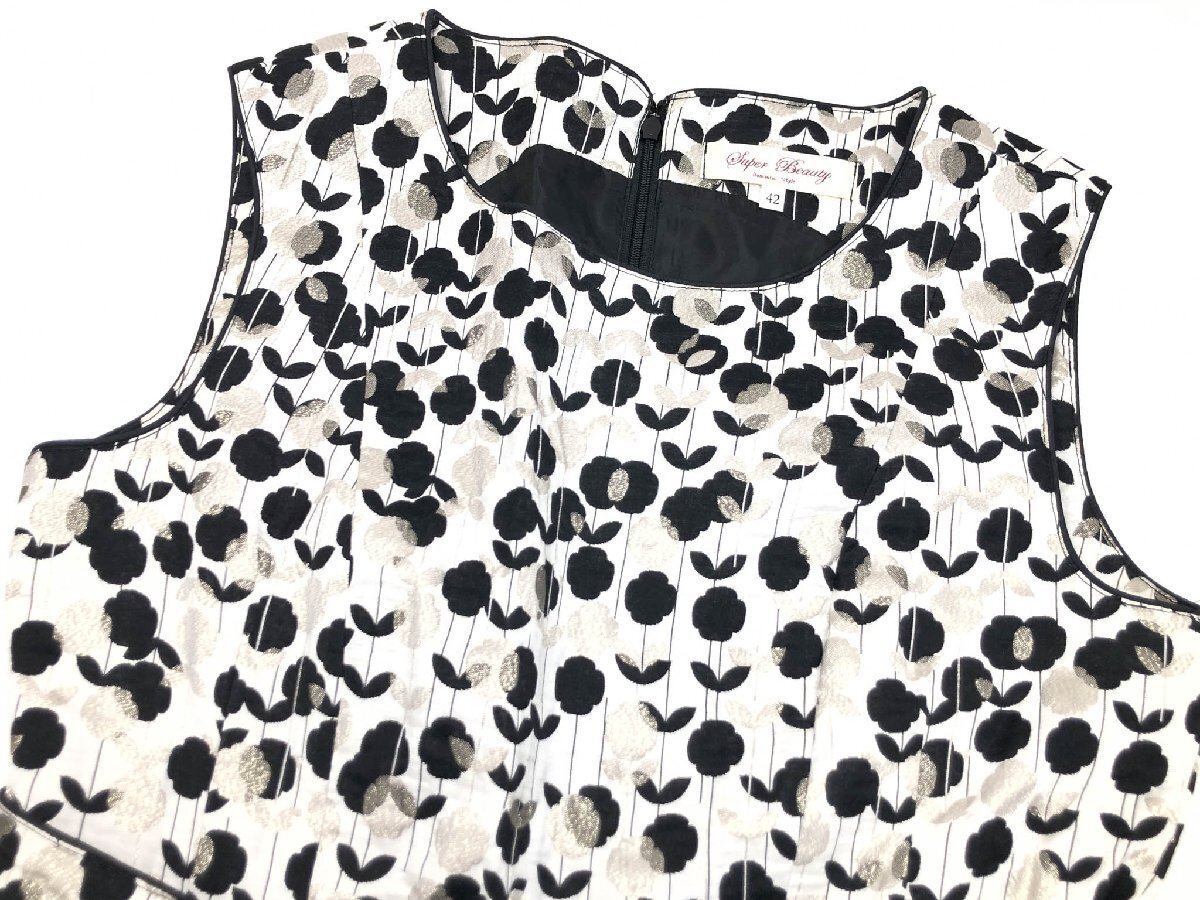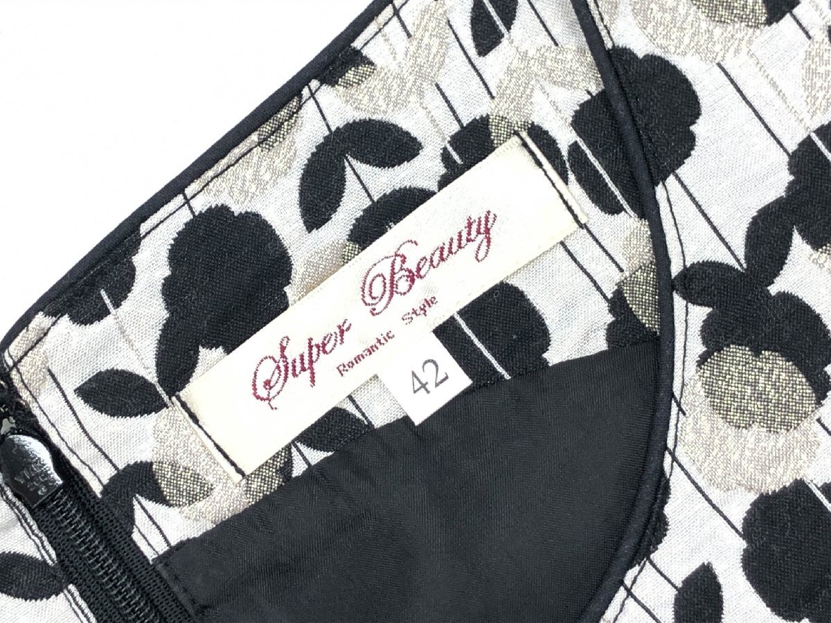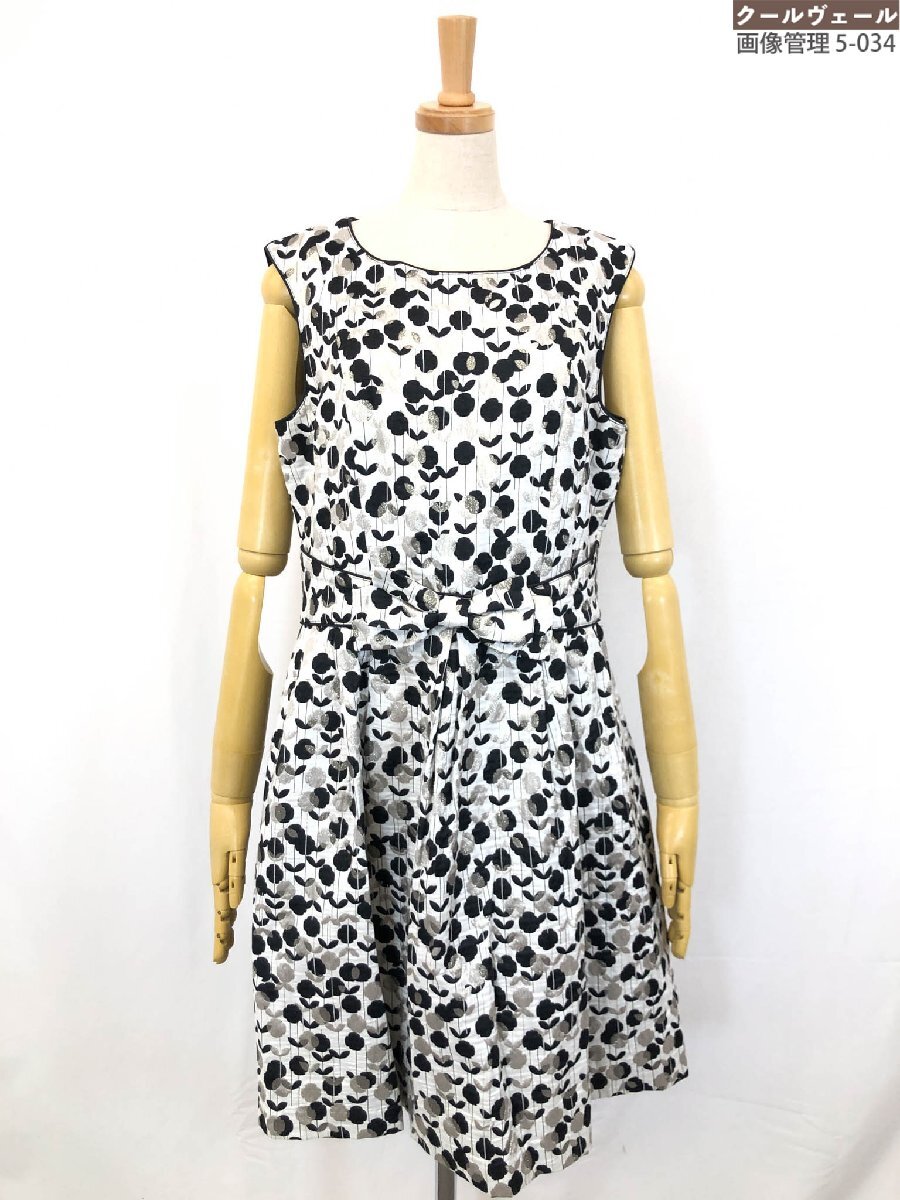 美品【スーパービューティ】ラメ糸入り ウエストリボン 花柄 ノースリーブワンピース(レディース)42 白に近いグレージュ系 ◇17LO3793◇
