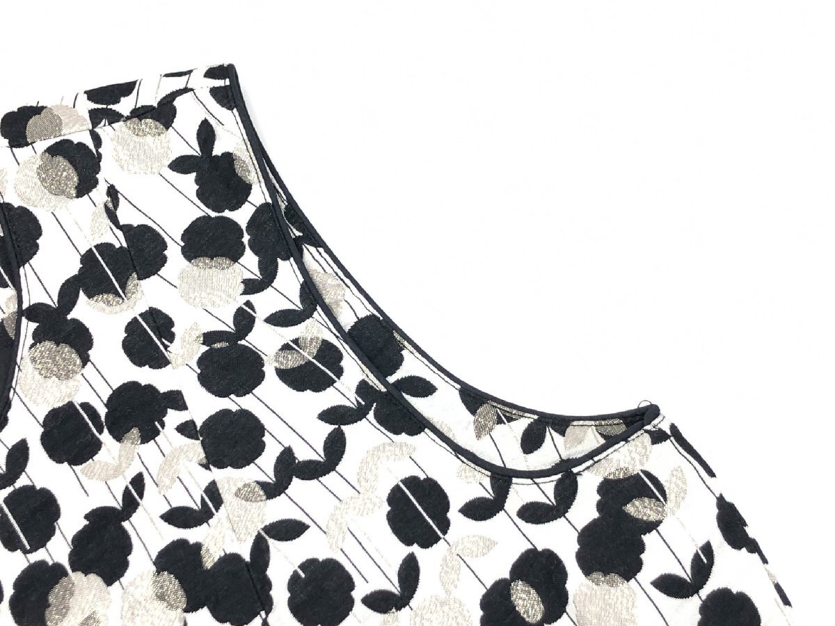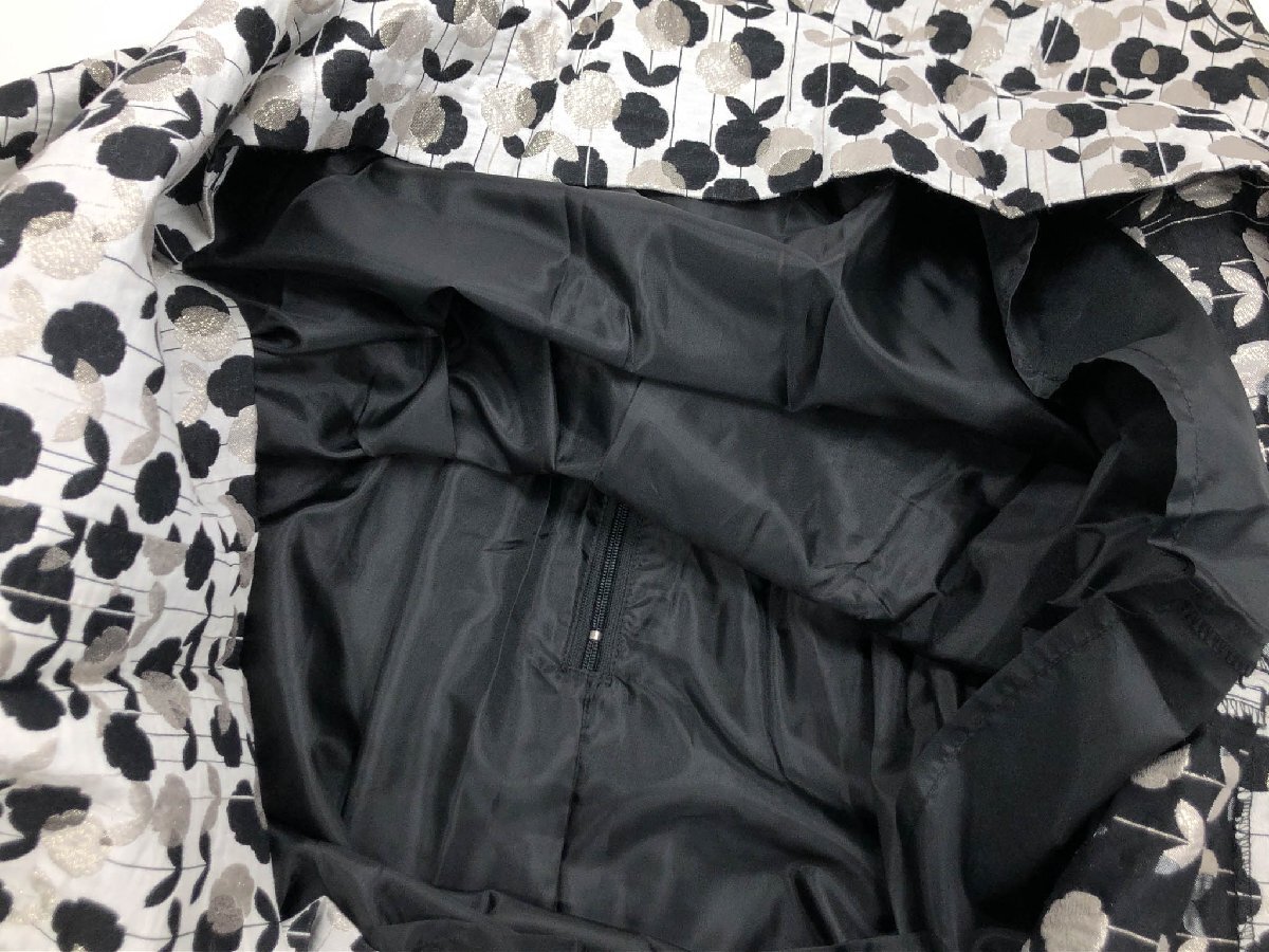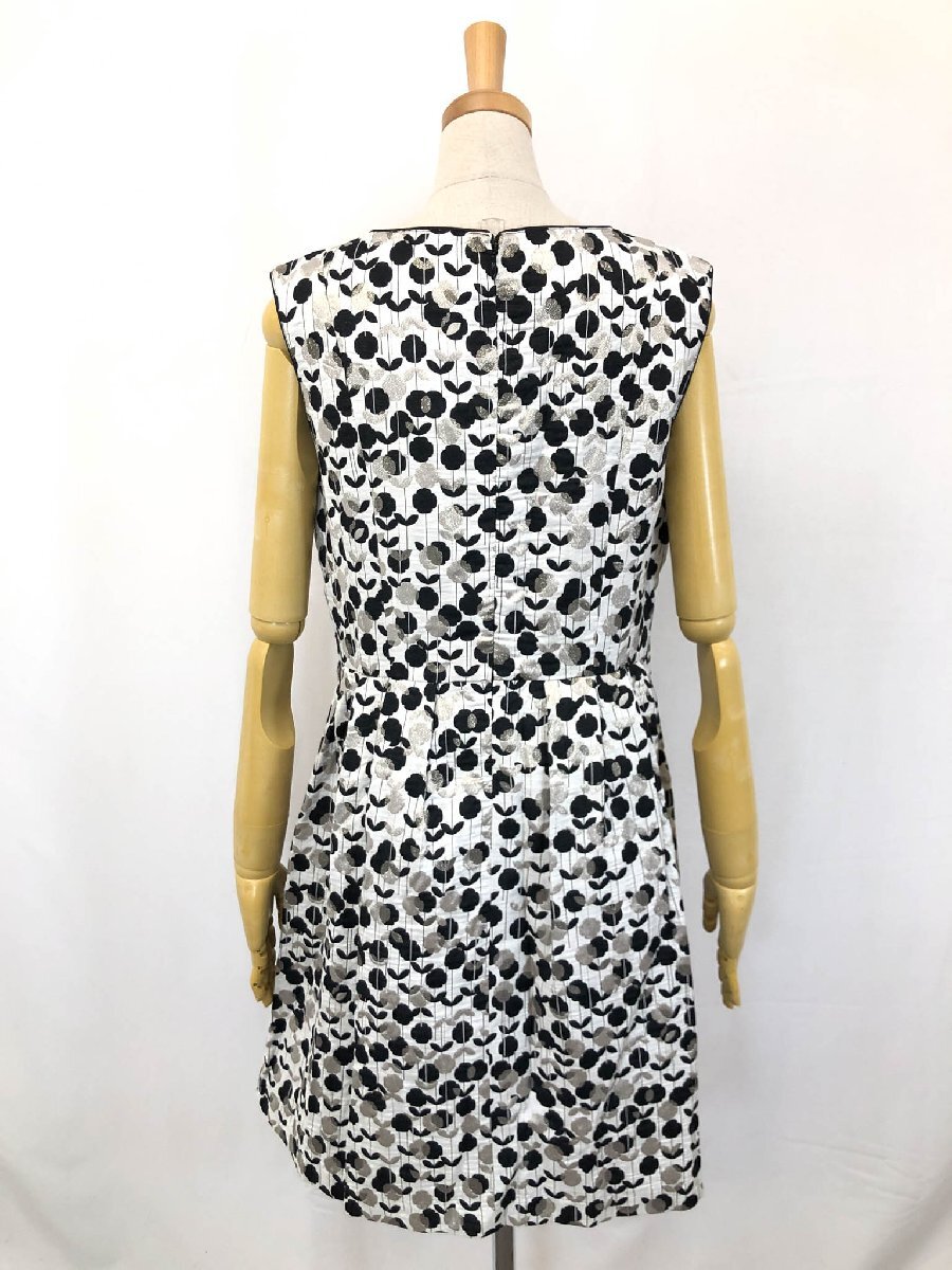 美品【スーパービューティ】ラメ糸入り ウエストリボン 花柄 ノースリーブワンピース(レディース)42 白に近いグレージュ系 ◇17LO3793◇
