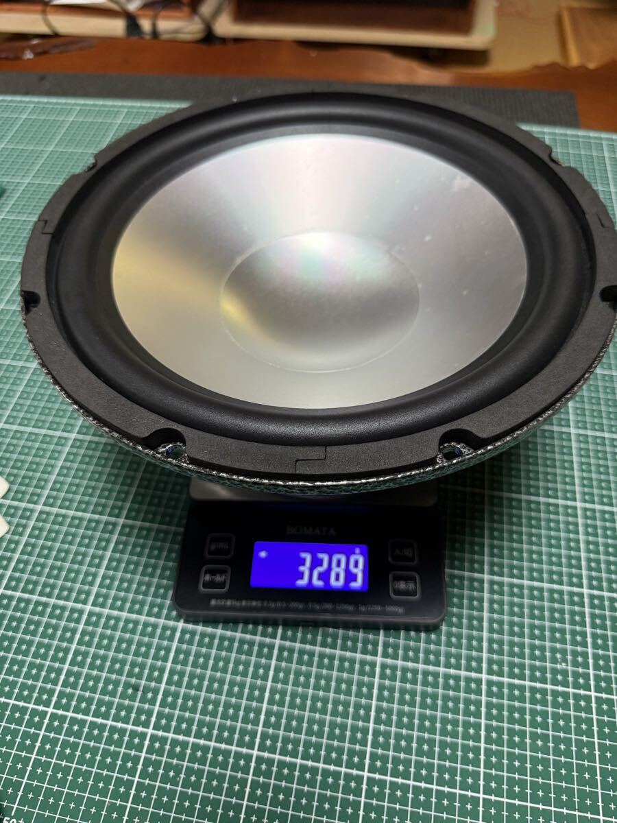 アルミコーン Wボイスコイル 4Ω(並列)耐入力240W 3289gとなっています。焼結仕上げのダイカストフレームと高剛性です。メーカーOEMの製品ですので刻印等一切ありません。それは製品の外観のディテールを見て判断をお願いします。参考までにフォステクスのFW200が3.8Kgです。