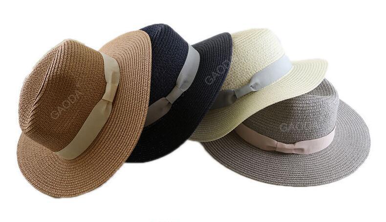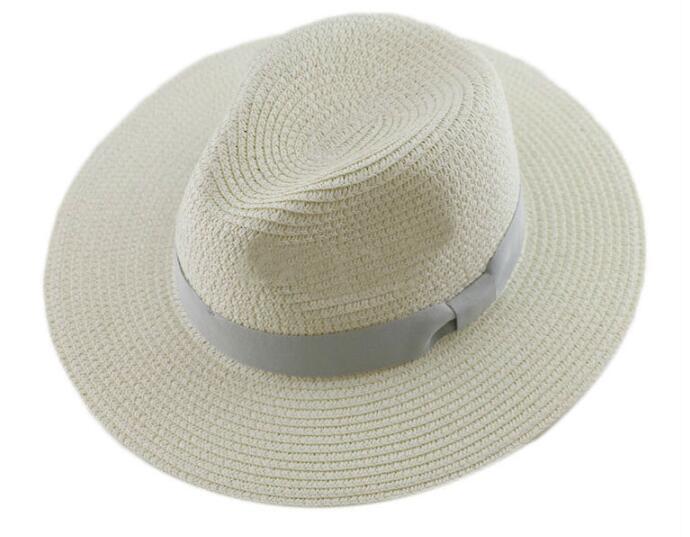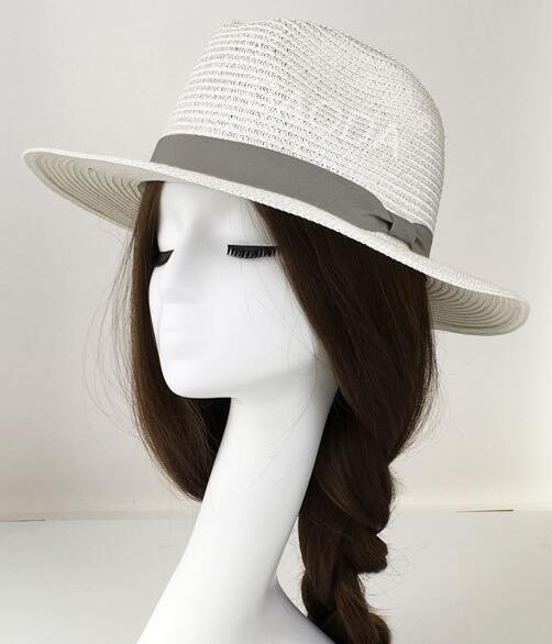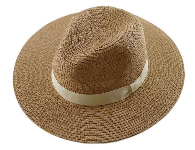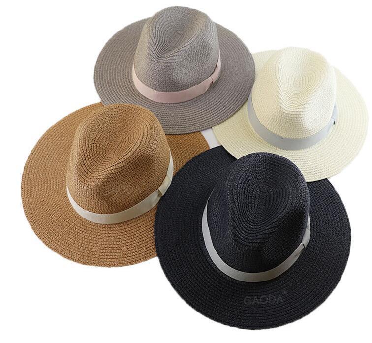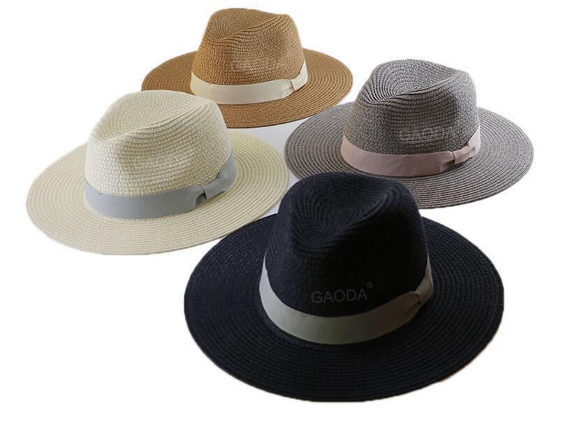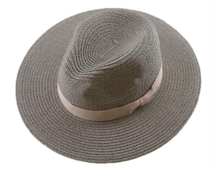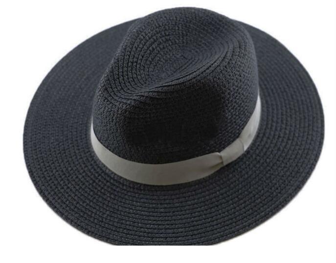新品 高級 フェドラ ツバ広 フラット ストローハット イタリア キャンプ レトロ 大きいサイズ*グレ サイズ59cm 60cm 黒