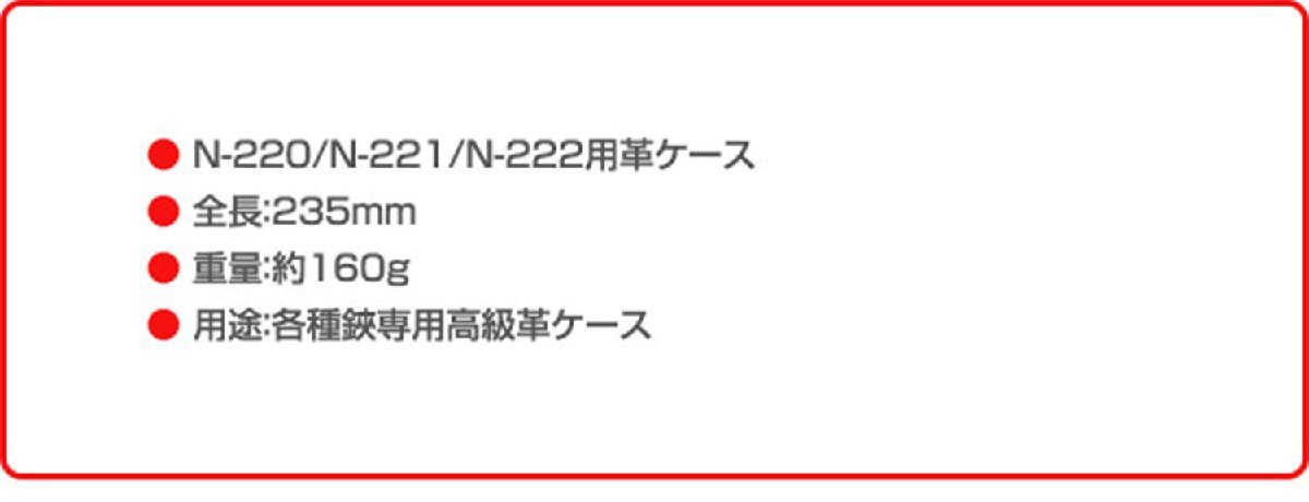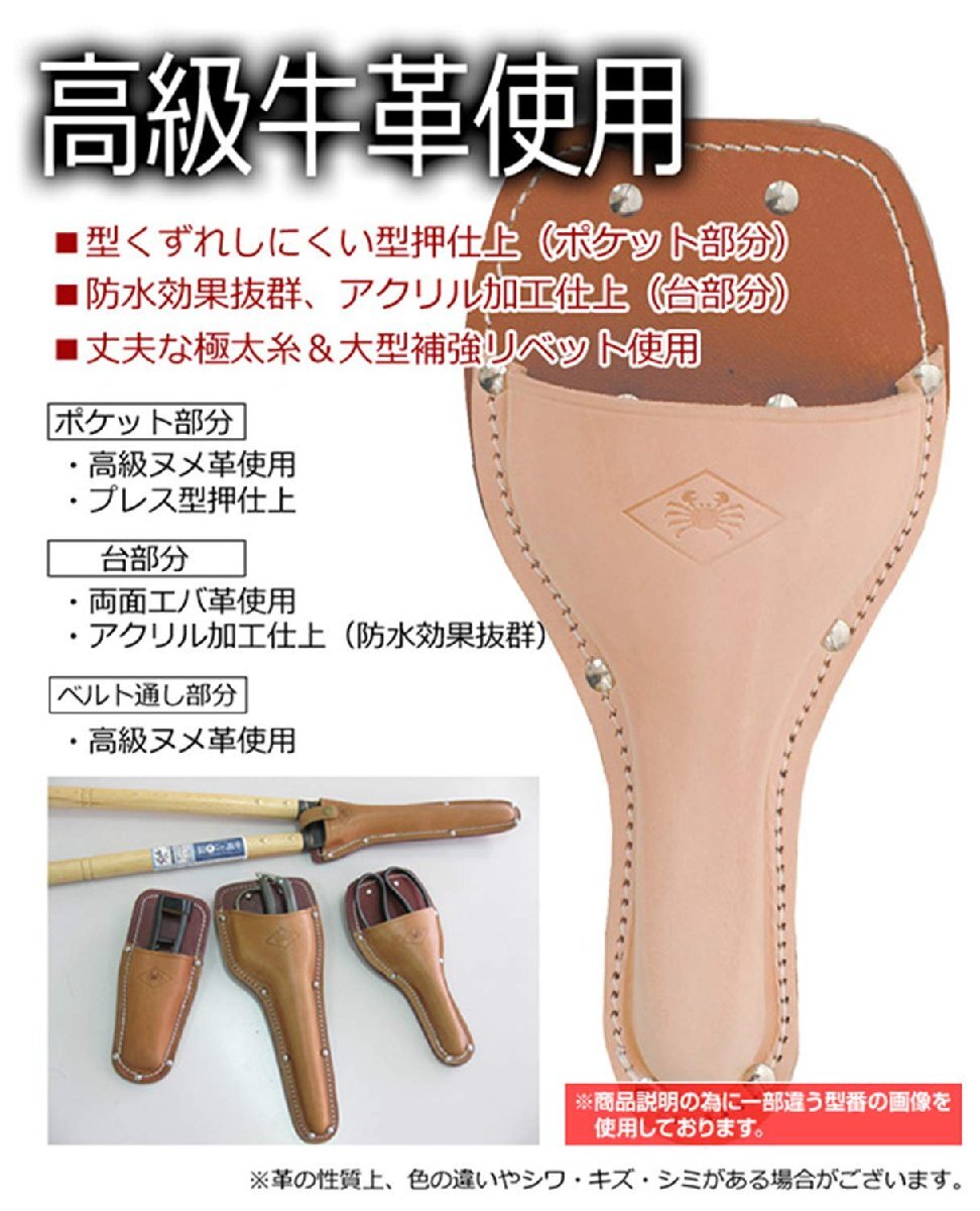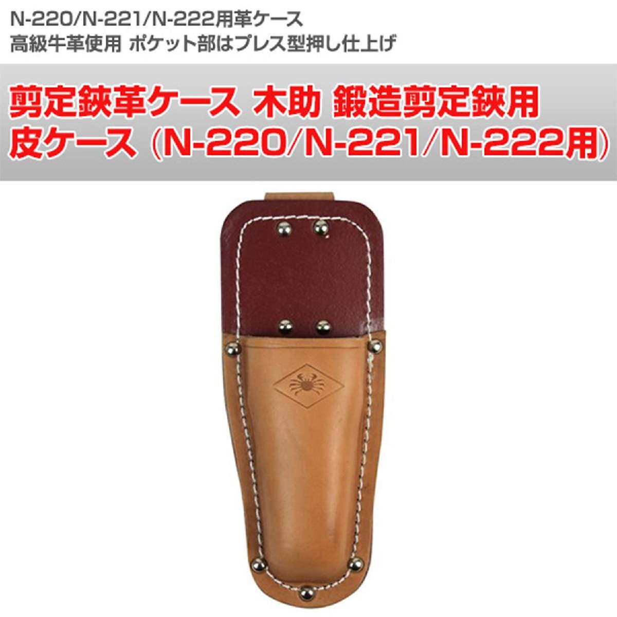 「ニシガキ工業 剪定鋏革ケース 木助 鍛造剪定鋏用 皮ケース (N-220/N-221/N-222用) N-236」▼4964590230062▼(商品説明)インダストリアル・ N-236・仕様:プレス型押し仕上げ(ポケット部)・材質:牛革・ヌメ革・エバ革・仕様:大型補強リベット説明 N-220/N-221/N-222用革ケース 【用途】 N-220/N-221/N-222用革ケース 【特長】 ・高級牛革を使用 ・ポケット部分は型くずれしにくい型押仕上げ ・台部分は防水が抜群のアクリル加工 ・丈夫な極太糸を使用している ※湿気などによりカビが生じる場合があります。