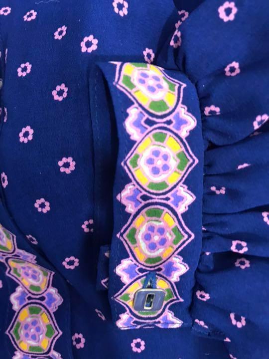 お色は、きれいな青にピンクの花柄がプリントされています。