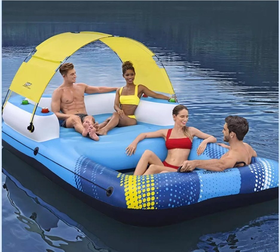 水上充気浮床多人用大型浮排浮板浮き椅子日よけ浮島水泳