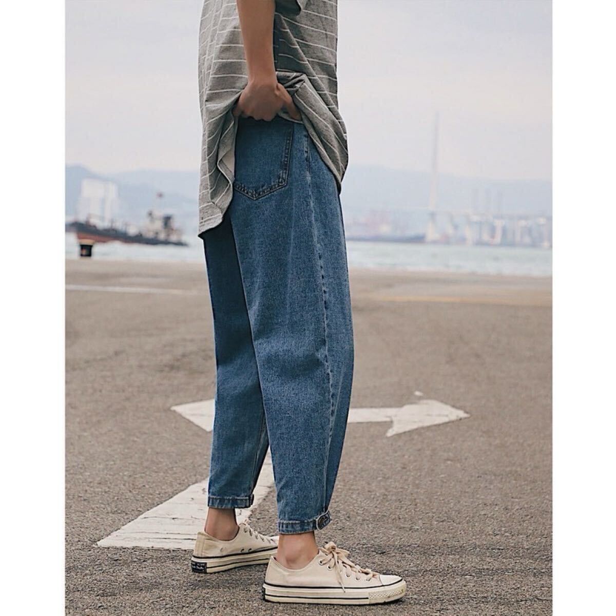 デニム シンプル 9分丈 ジーンズ ワイドパンツ シェフパンツ ワイドレッグパンツ ボトムス ストレートデニム アンクル丈 裾絞り
