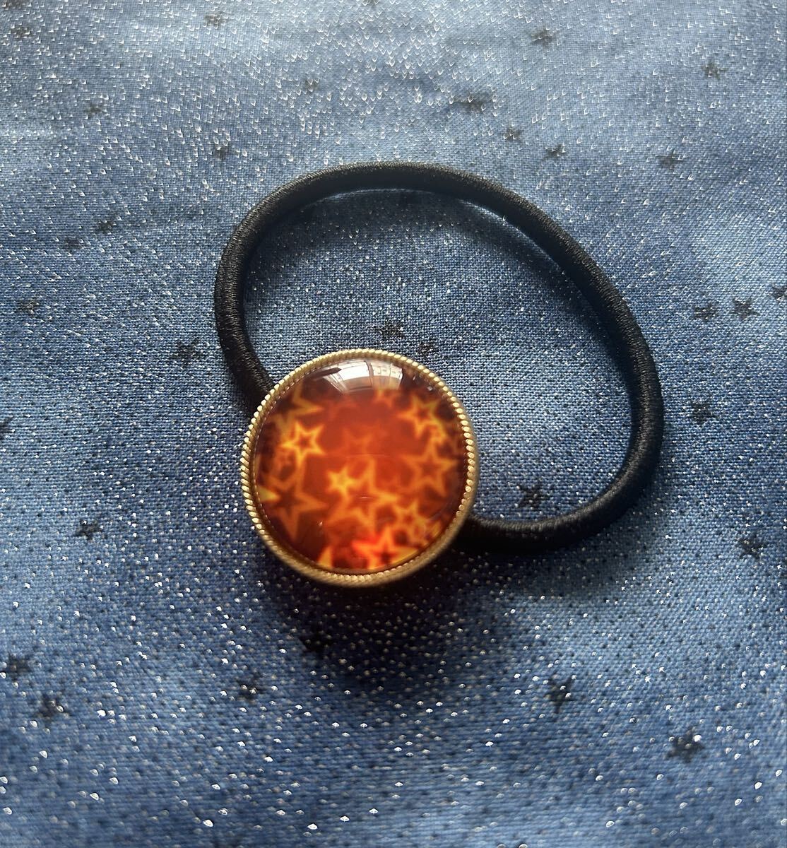 ガラスカボションで作成したヘアゴムです。
