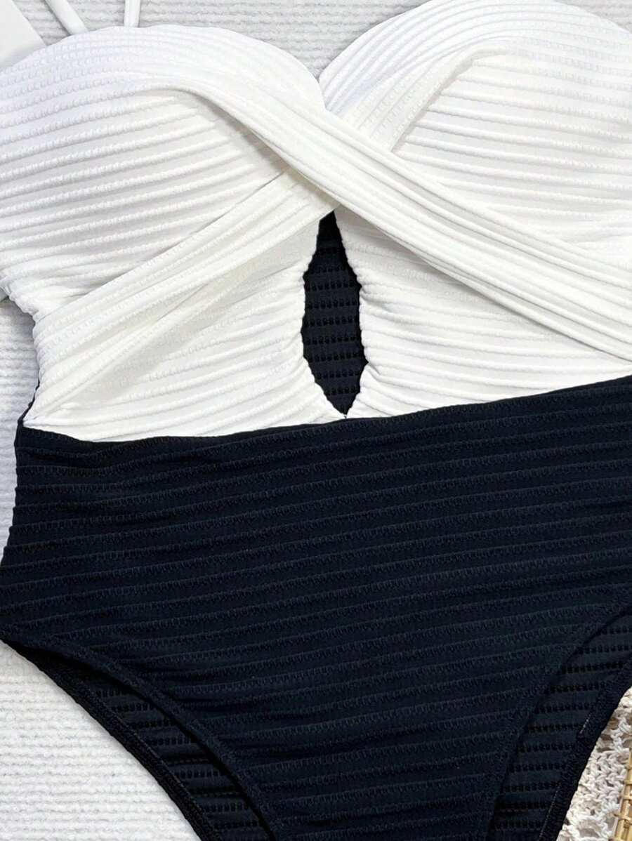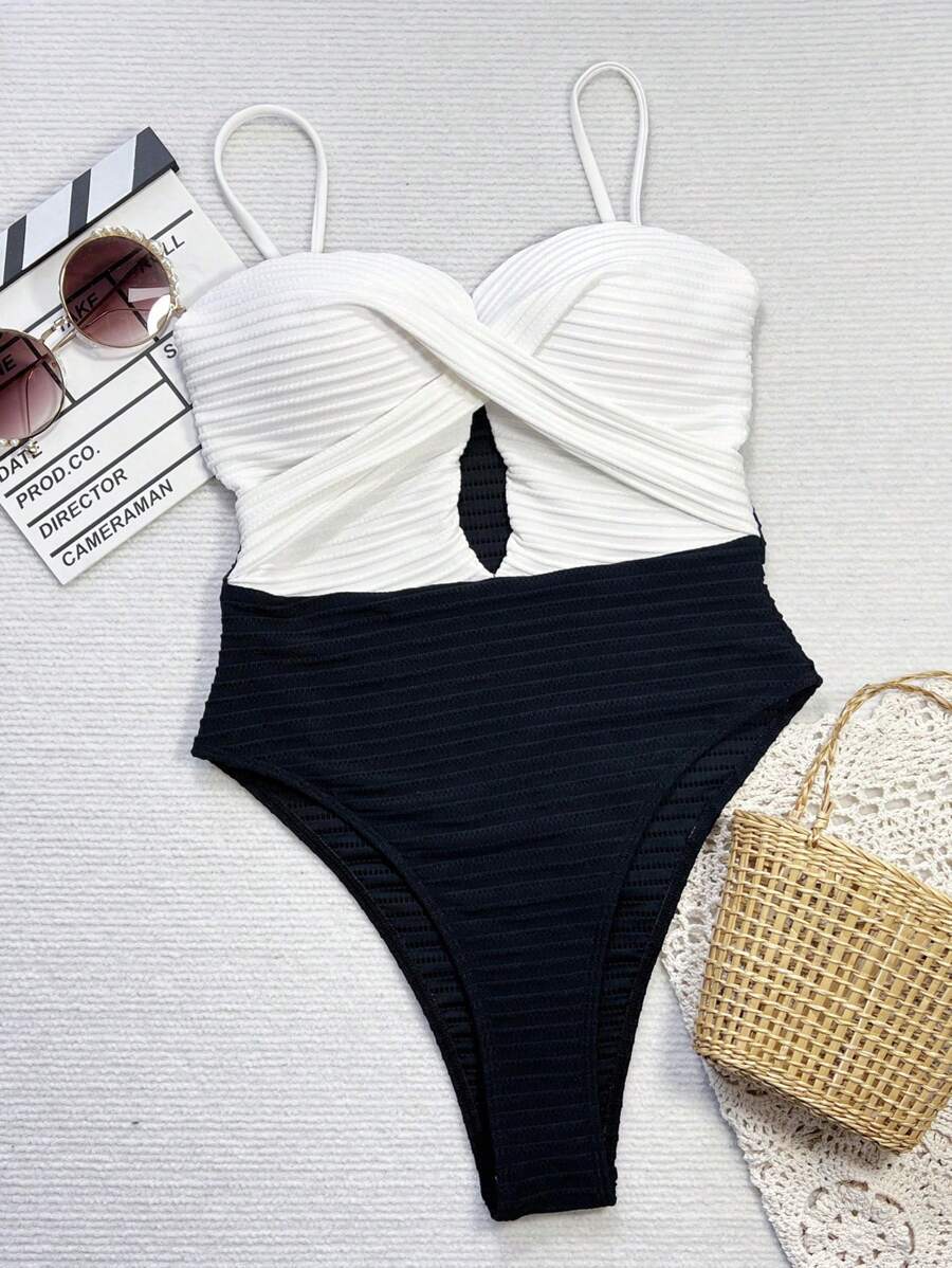 レディース 水着 ワンピース カラーブロック ワンピース水着、プッシュアップ、ワイヤレス