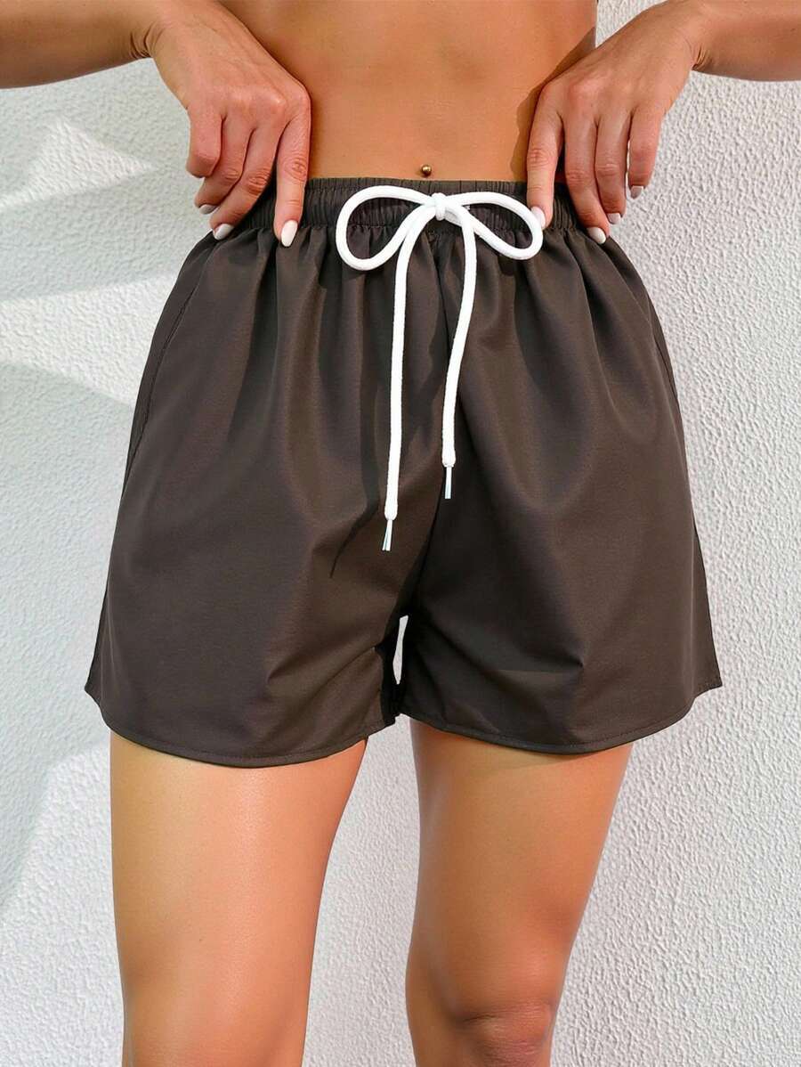 レディース 水着 ボトムス レディース ドローストリング ウエストビーチスイムショーツ