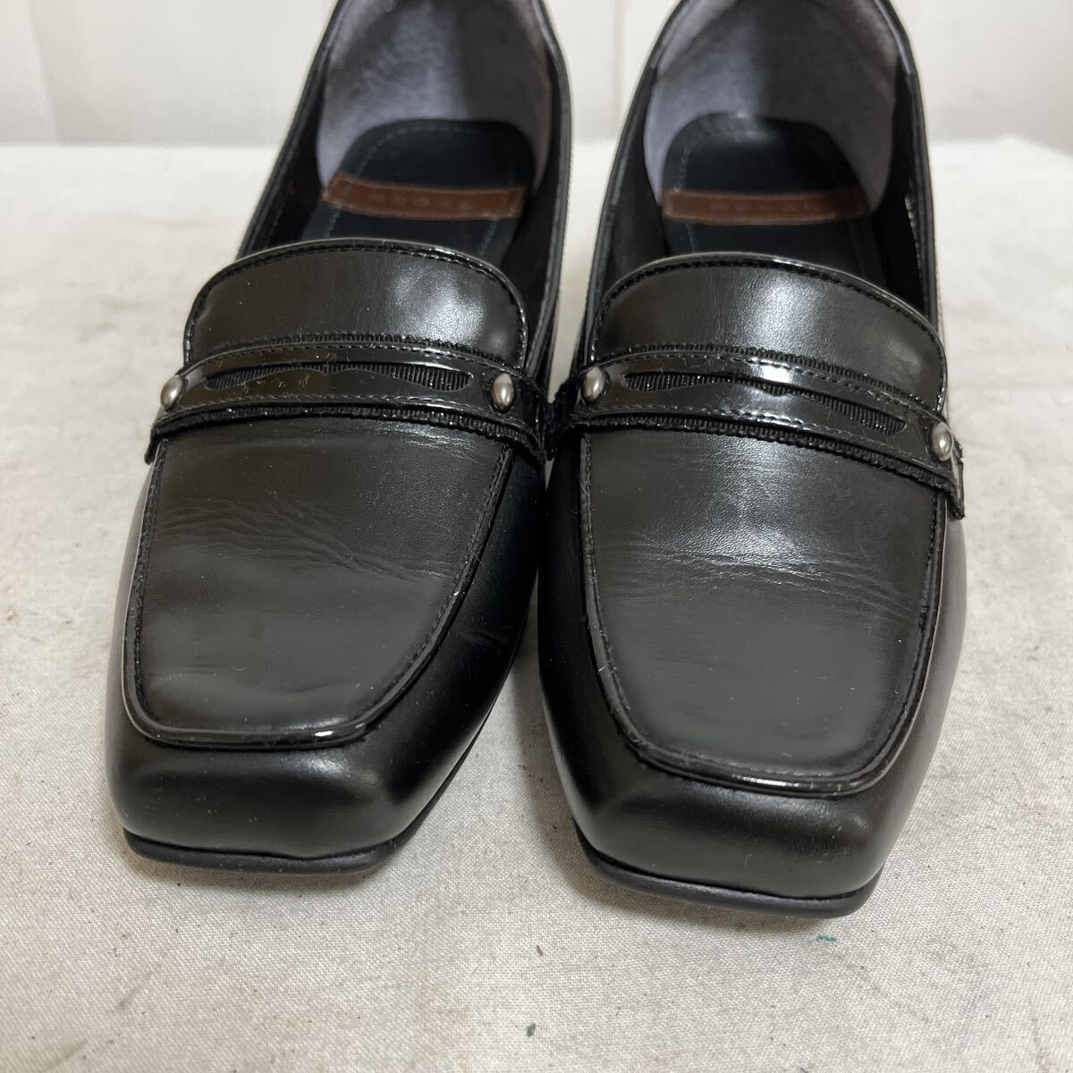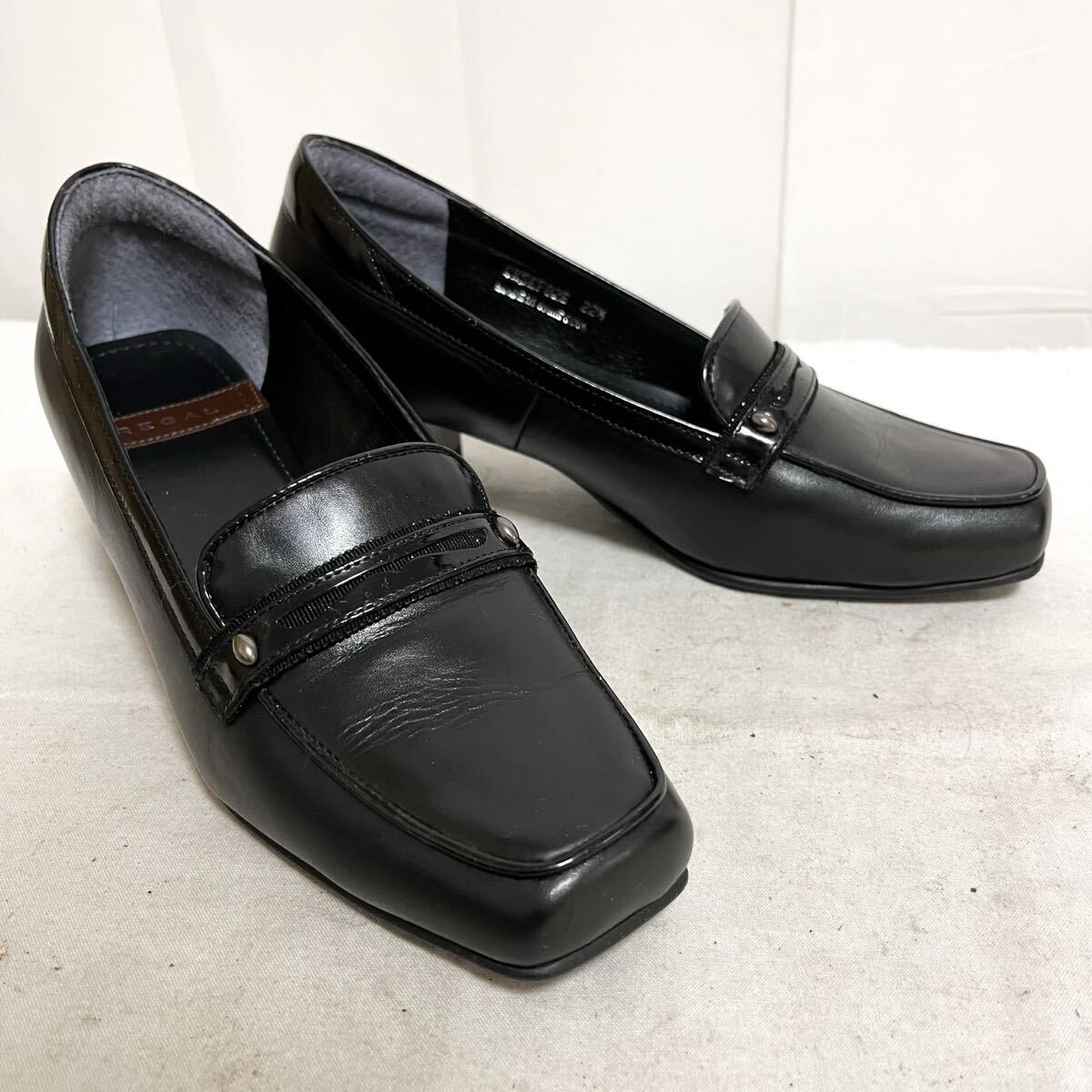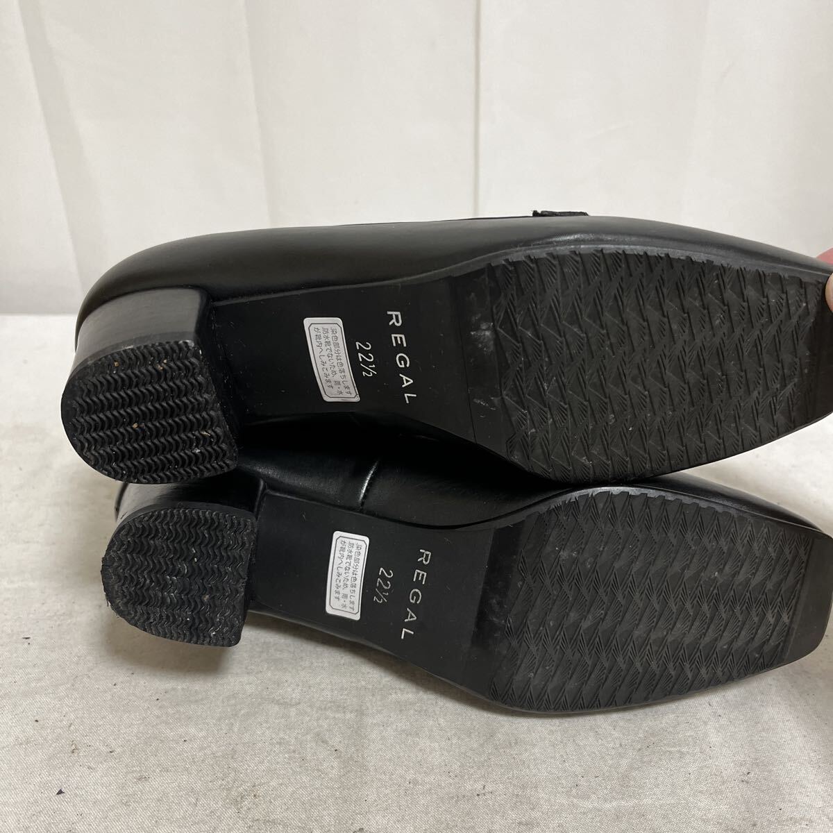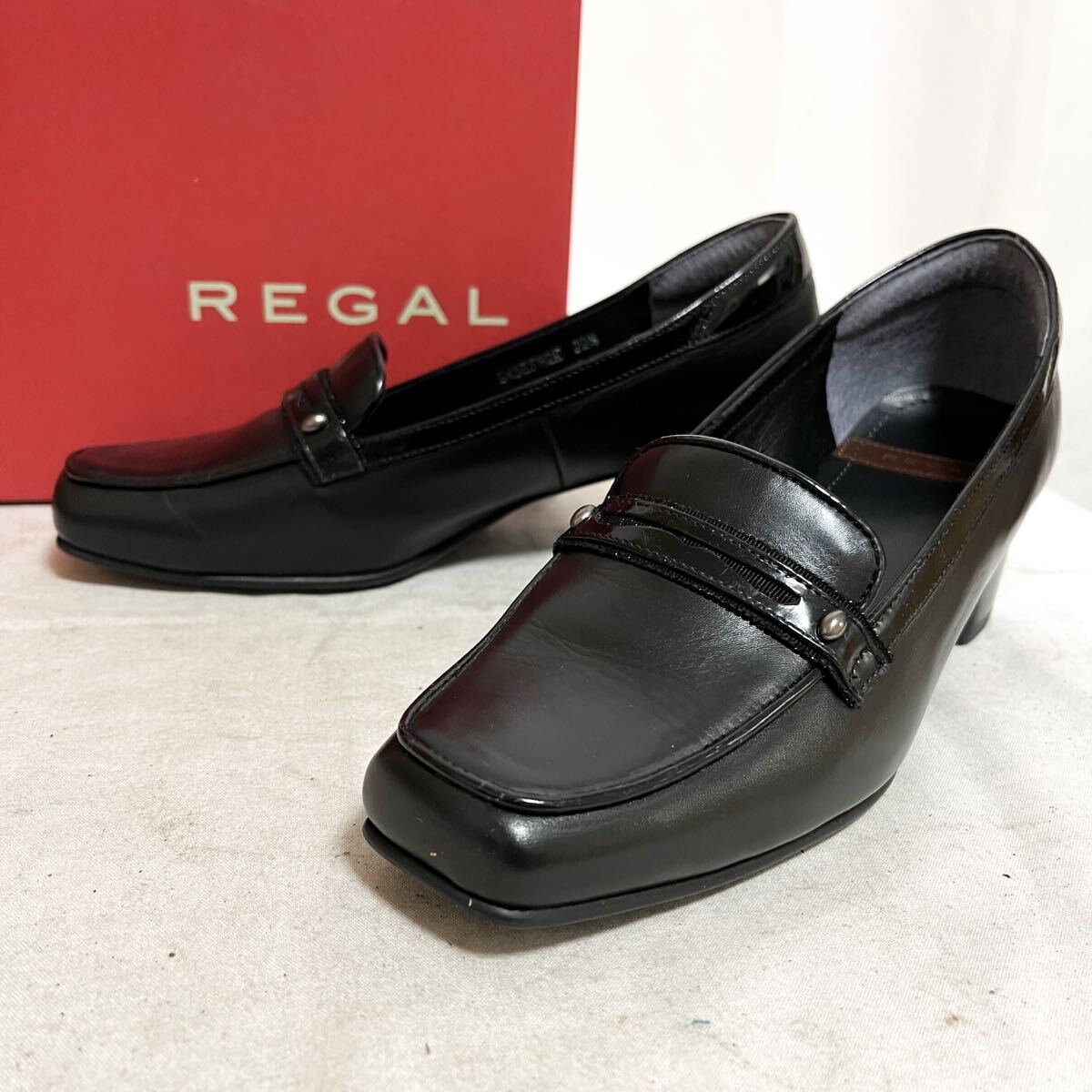 和836★ 美品 箱付き REGAL リーガル ヒール ローファー パンプス シューズ 22.5 ブラック レディース