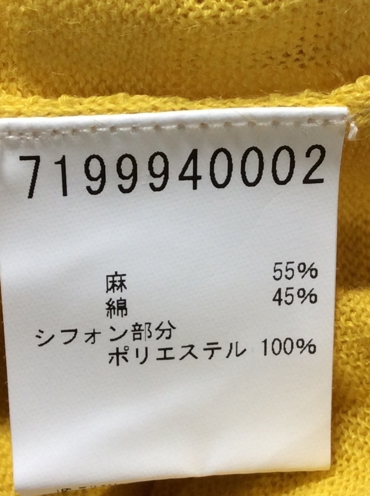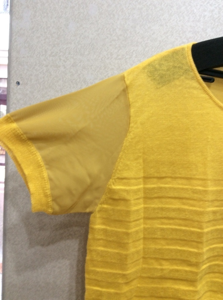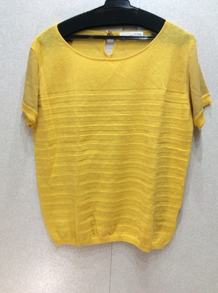 | 管理番号:124860 アバハウス 黄色半袖麻、綿カットソー 袖シフォン 表示サイズ:表記なし 実寸(参考)