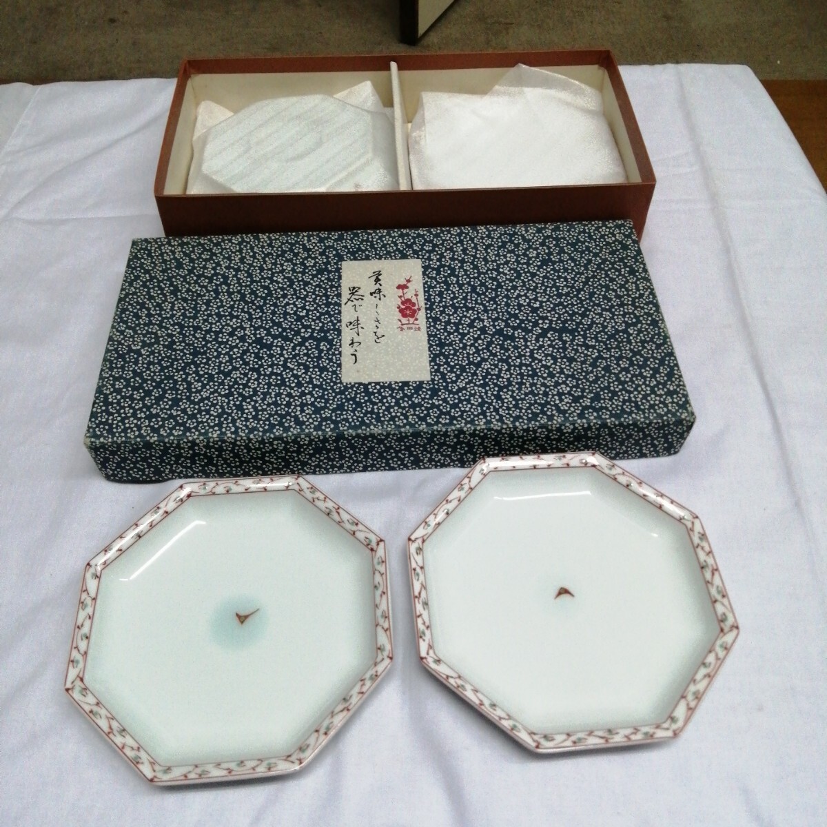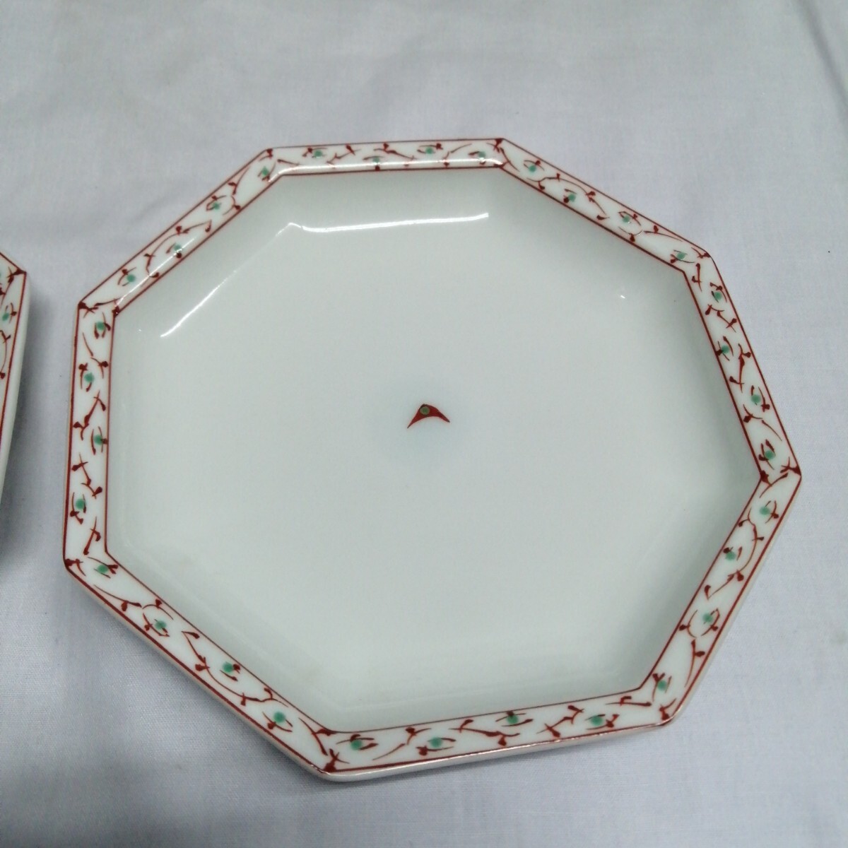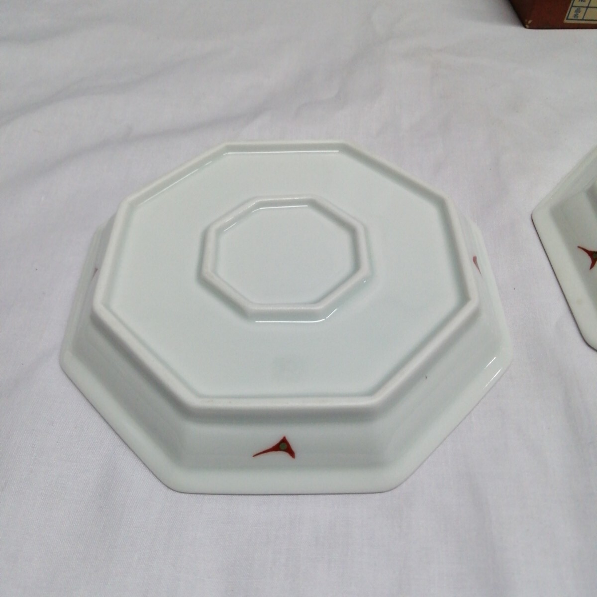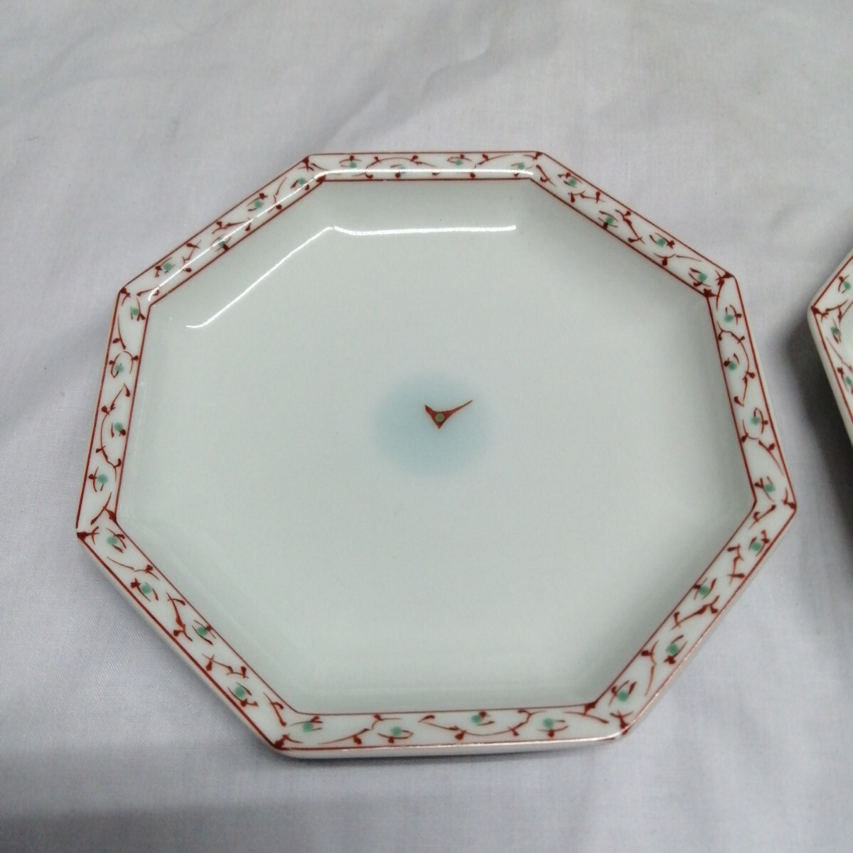 箱入未使用 計5枚 有田焼 赤絵 八角 取皿 小料理 花 華