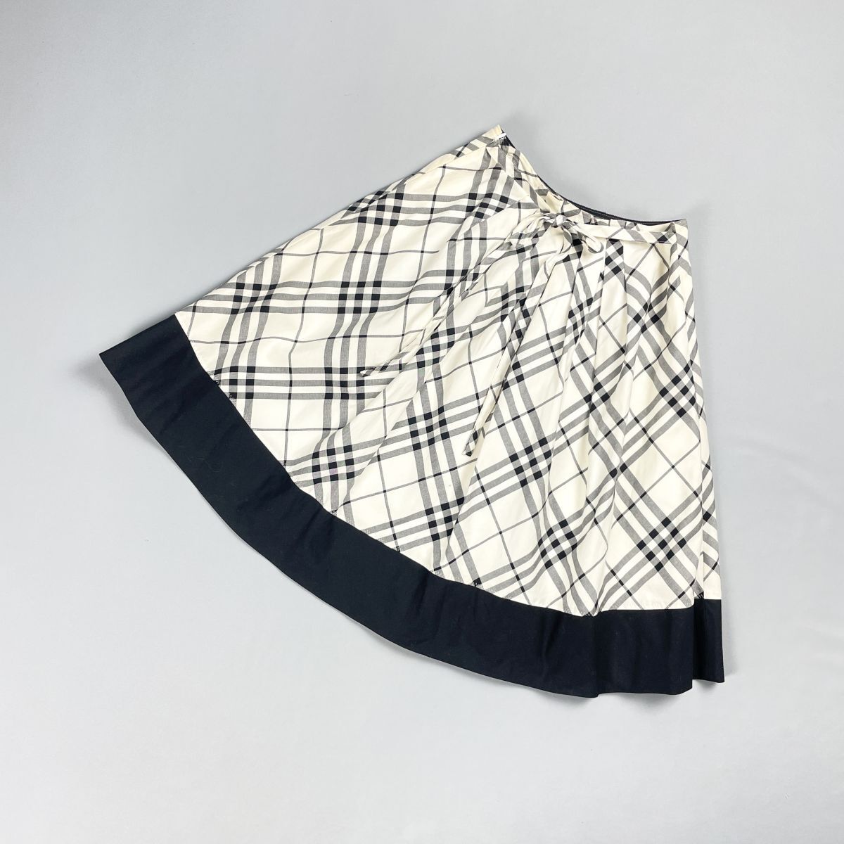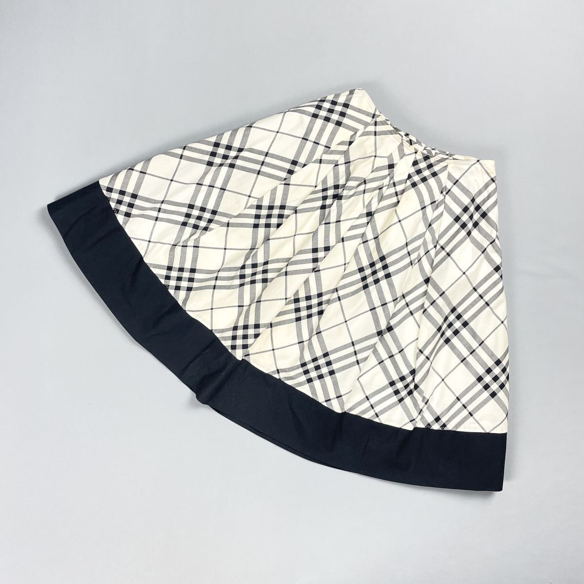 美品 BURBERRY BLUE LABEL バーバリーブルーレーベル ノバチェック柄フレアスカート 膝丈 モノトーン 黒 白 サイズ38*FD1075