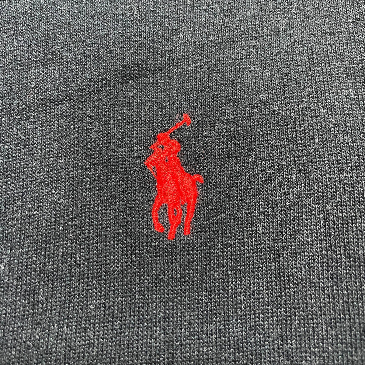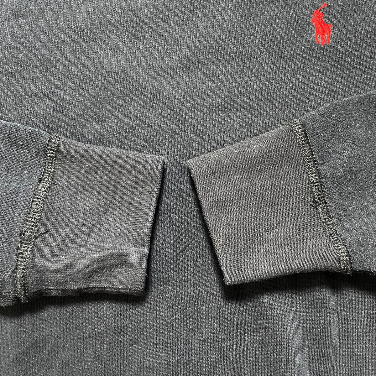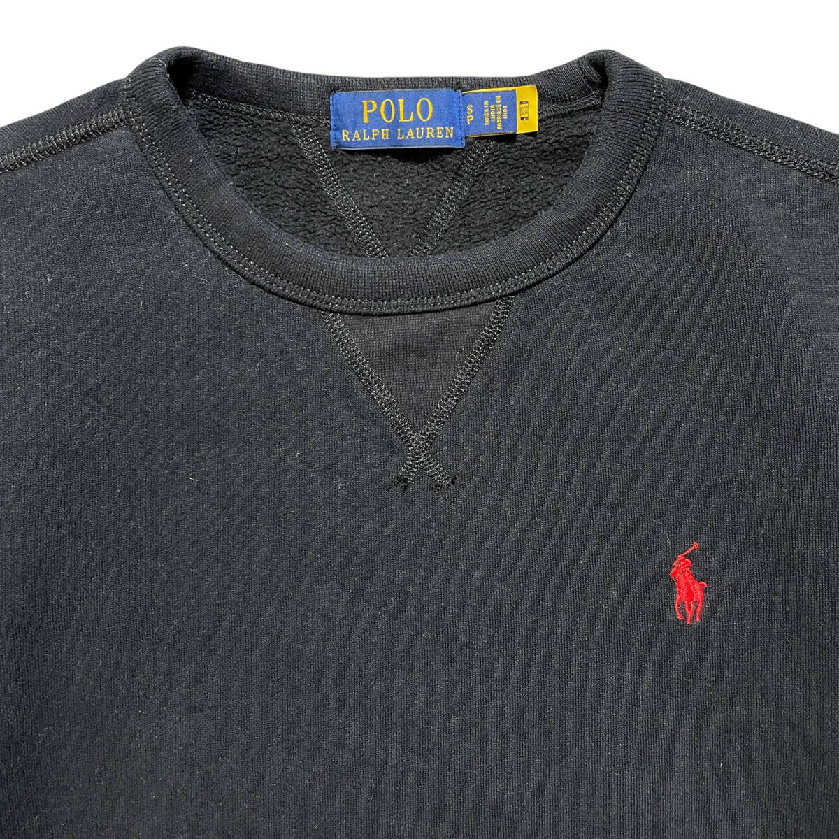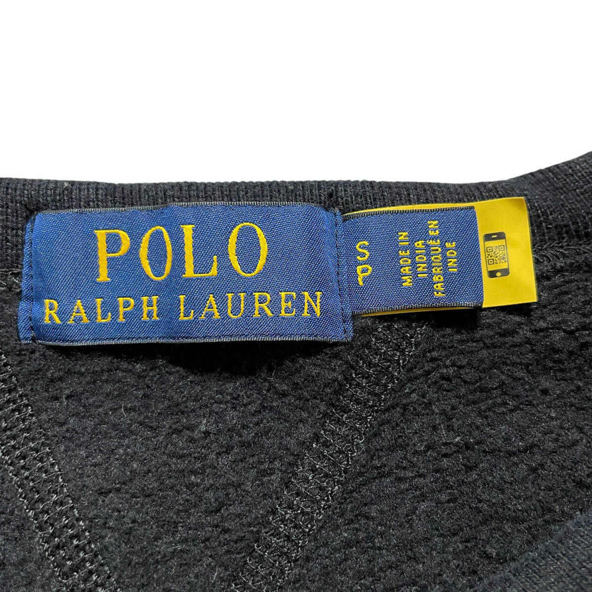 USA 古着 POLO RALPH LAUREN ポロラルフローレン スウェット トレーナー 前V ロゴ 刺繍 ブラック メンズS クルーネック BD2461