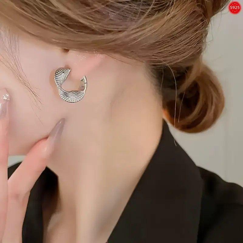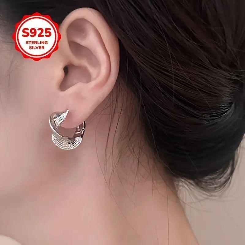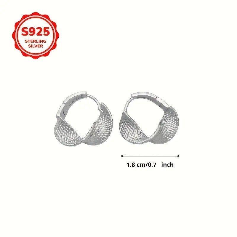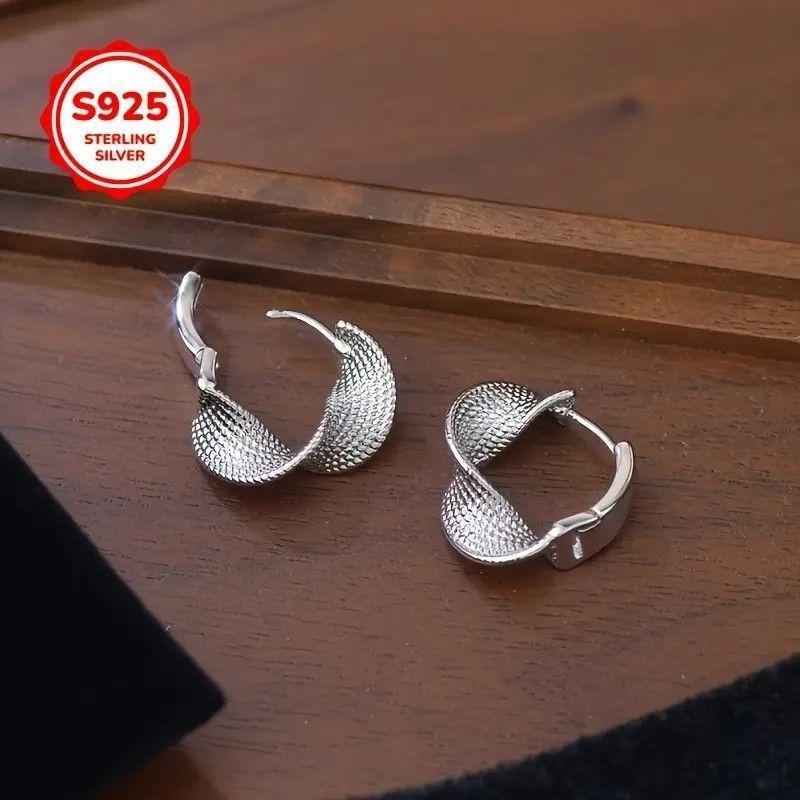 925シルバーを使用した、上品なツイストデザインのフープピアス。
