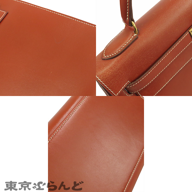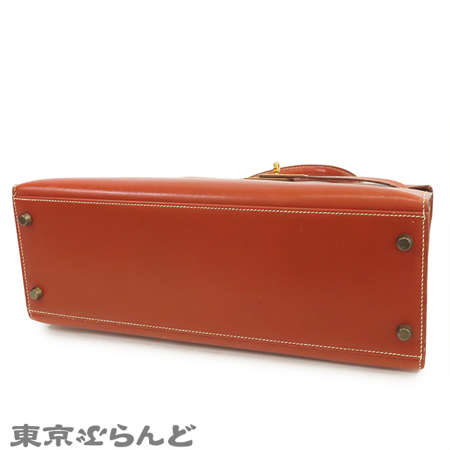 101818809 エルメス HERMES ケリー32 〇U刻印 茶 ブリック ゴールド金具 ボックスカーフ 外縫 ヴィンテージ ハンドバッグ レディース