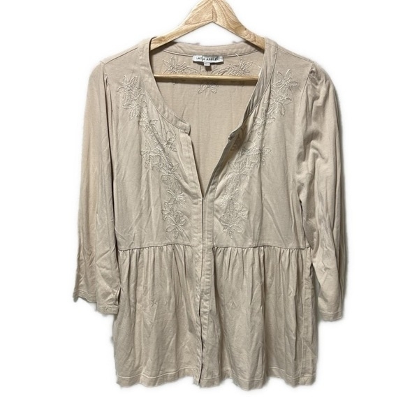 ローラアシュレイ LAURAASHLEY カーディガン サイズ13 L - ベージュ レディース 長袖/刺繍/フラワー(花) 美品 トップス