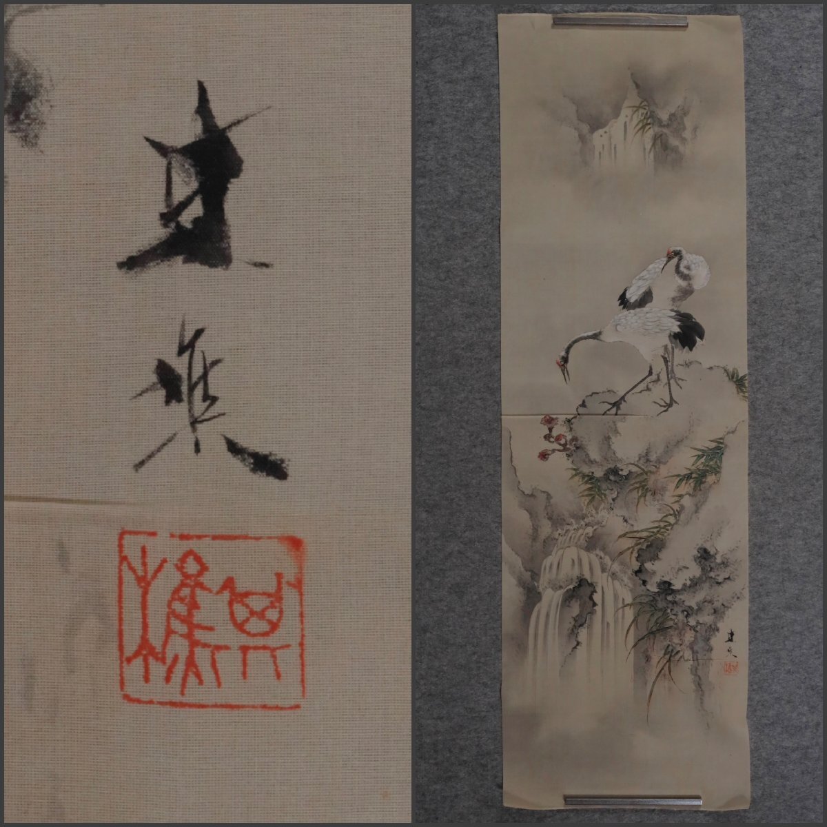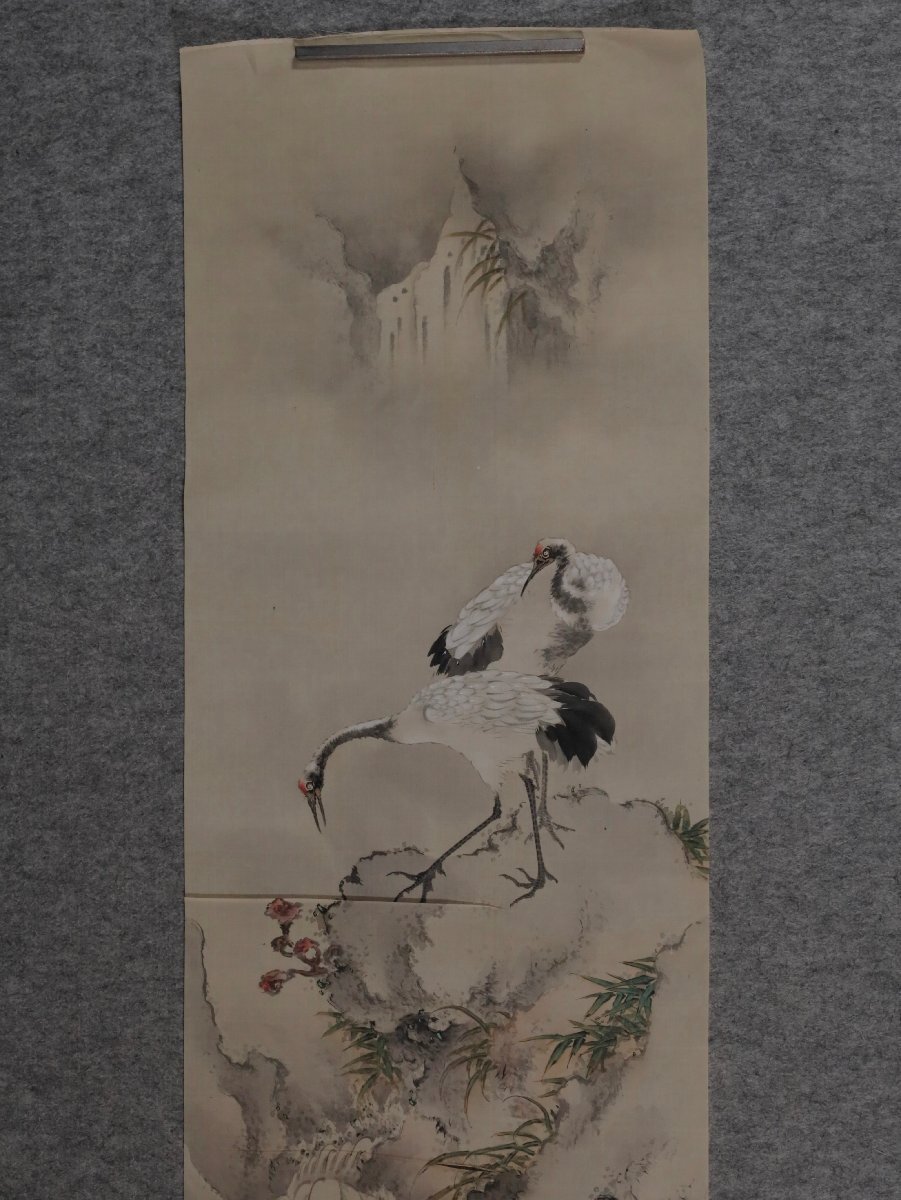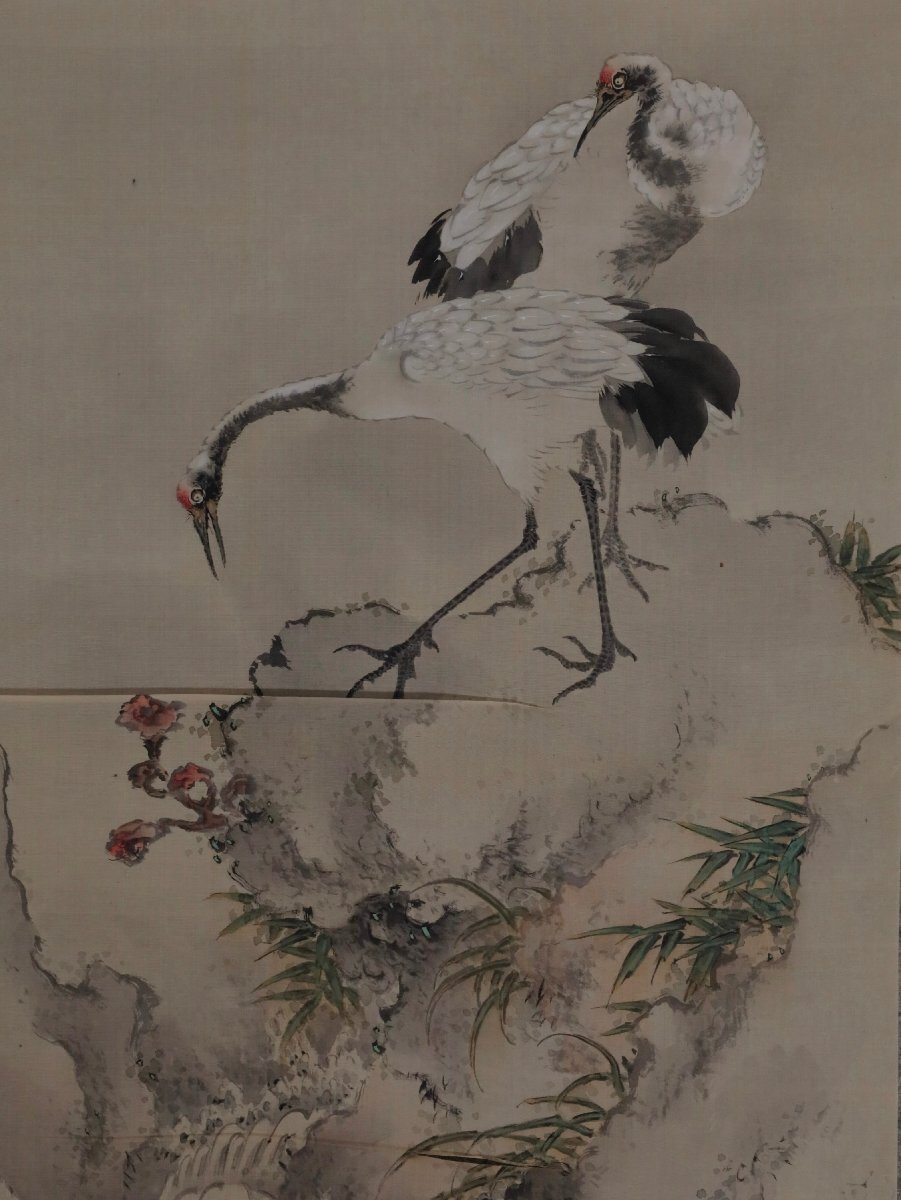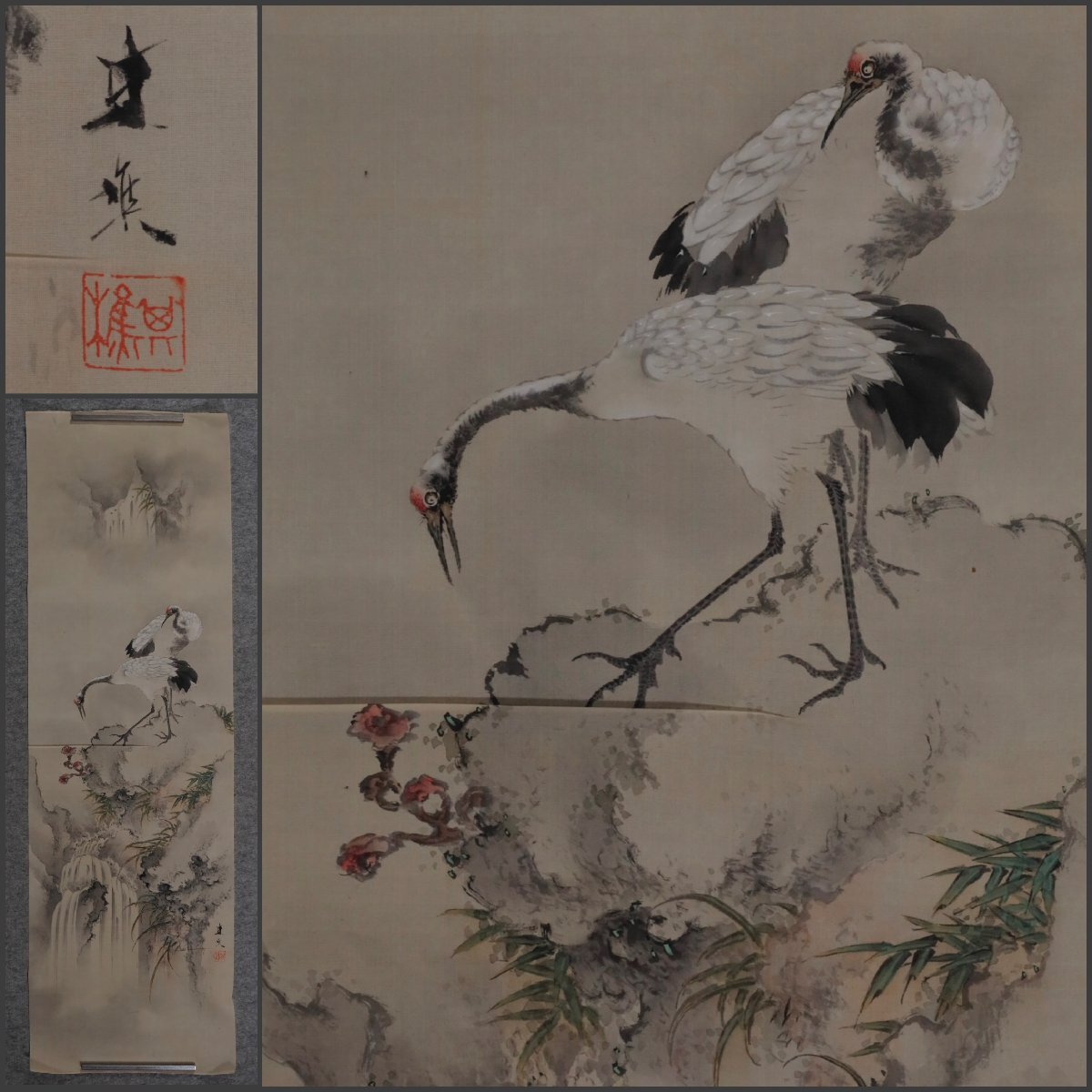 【模写】吉】12856 木村其樵 鶴図 まくり 長野県の人 上田藩士 木村培樵の子 中国画 茶掛け 茶道具 掛軸 掛け軸 骨董品